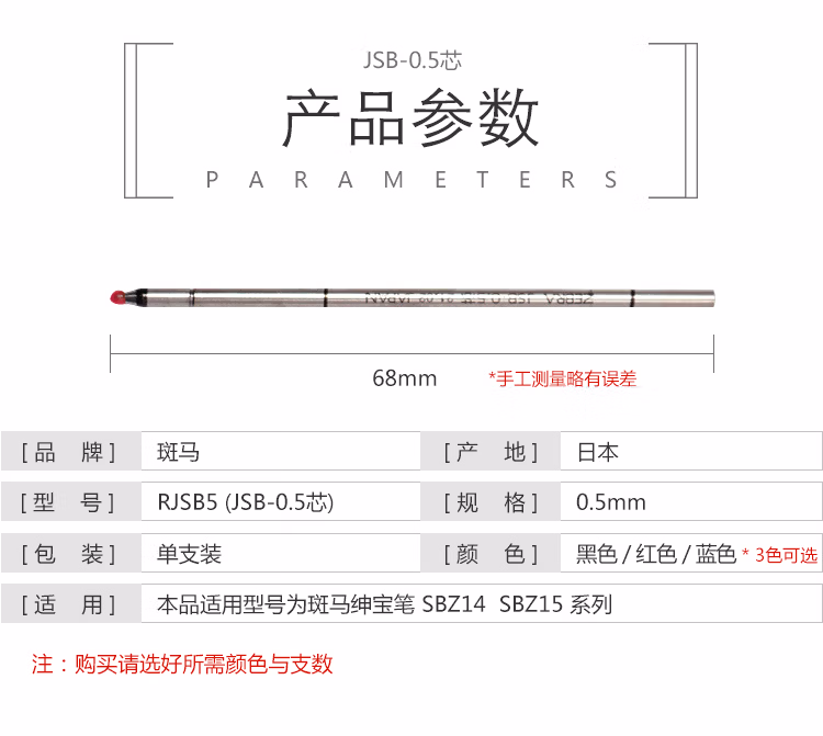 > 斑马牌(ZEBRA)绅宝笔替芯(适用于SBZ14/SBZ15)0.5mm子弹头多功能笔替芯 RJSB5 红色 单支装
