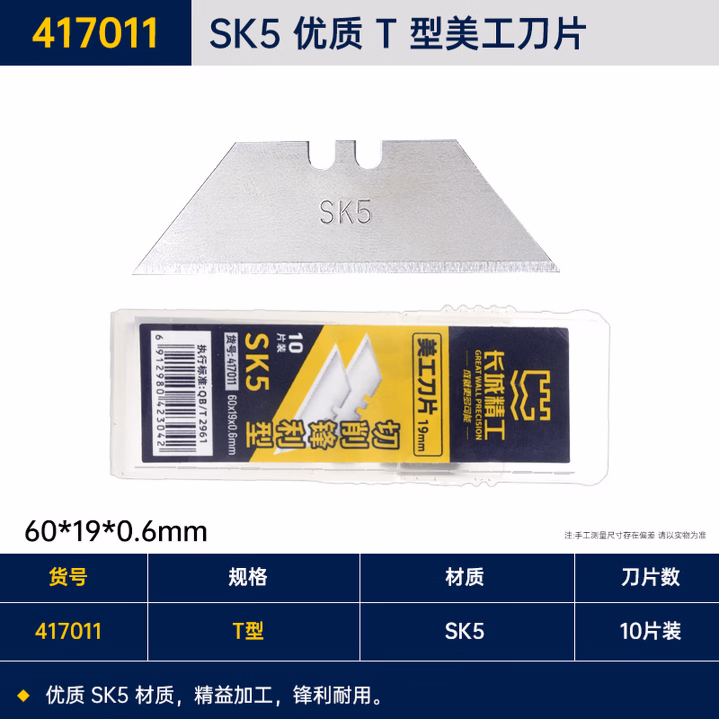 > 长城精工 美工刀片 8节18mm普通刀片一盒10片 417002