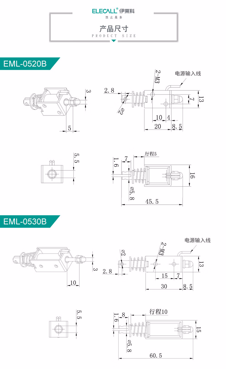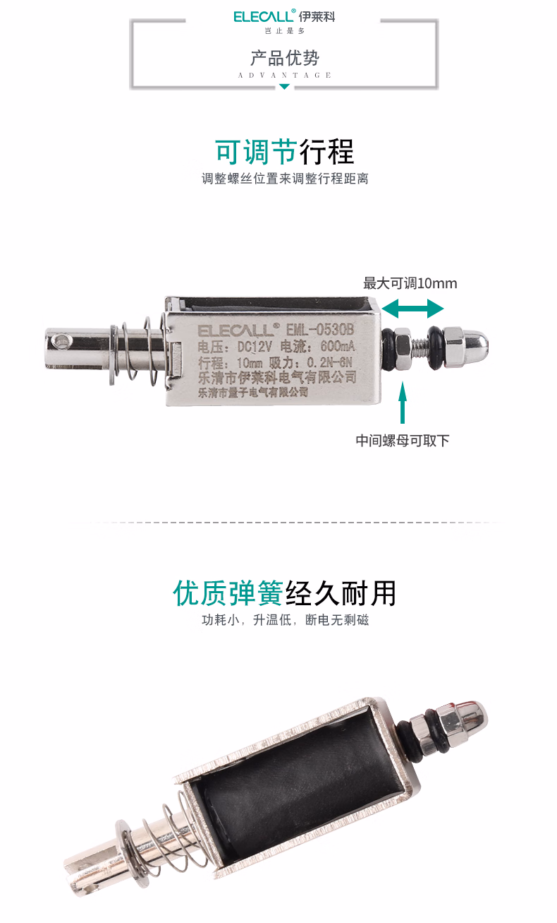 > 伊莱科(ELECALL)伊莱科ELECALL24V直流推拉式电磁铁EML微型吸盘铁大推力长行程12 电磁铁遥控开关(直流12-90V)0-4