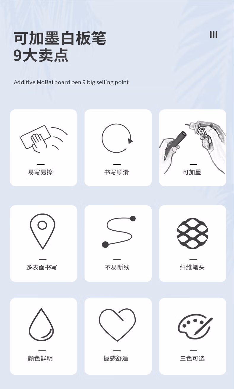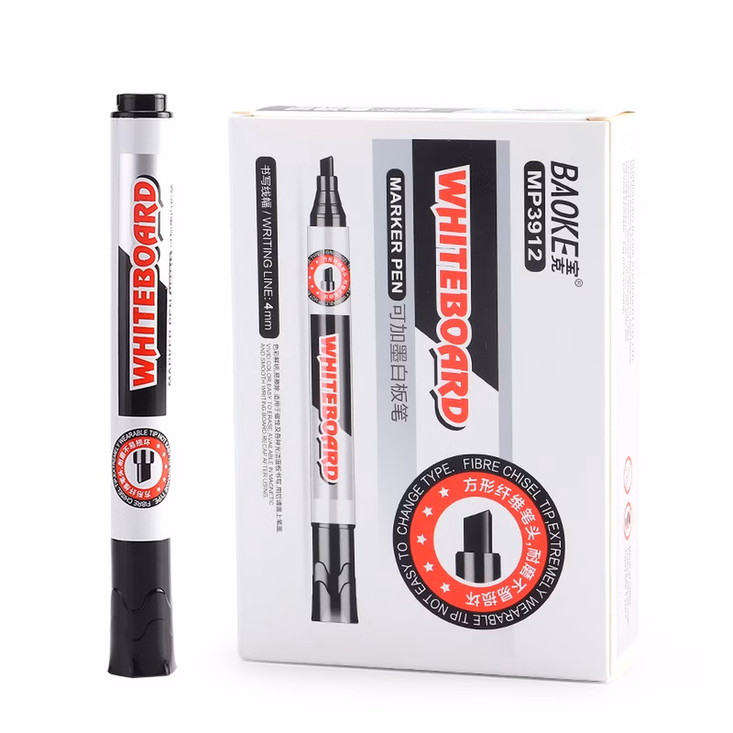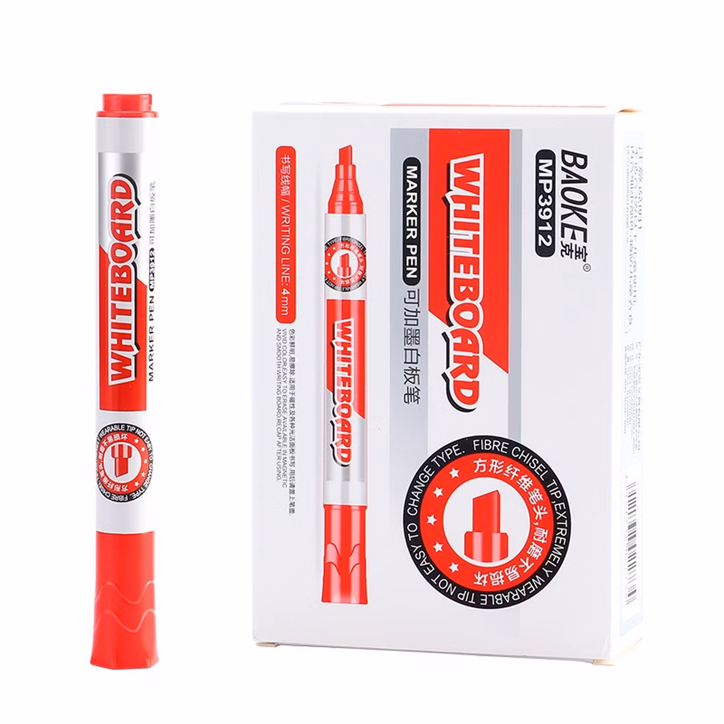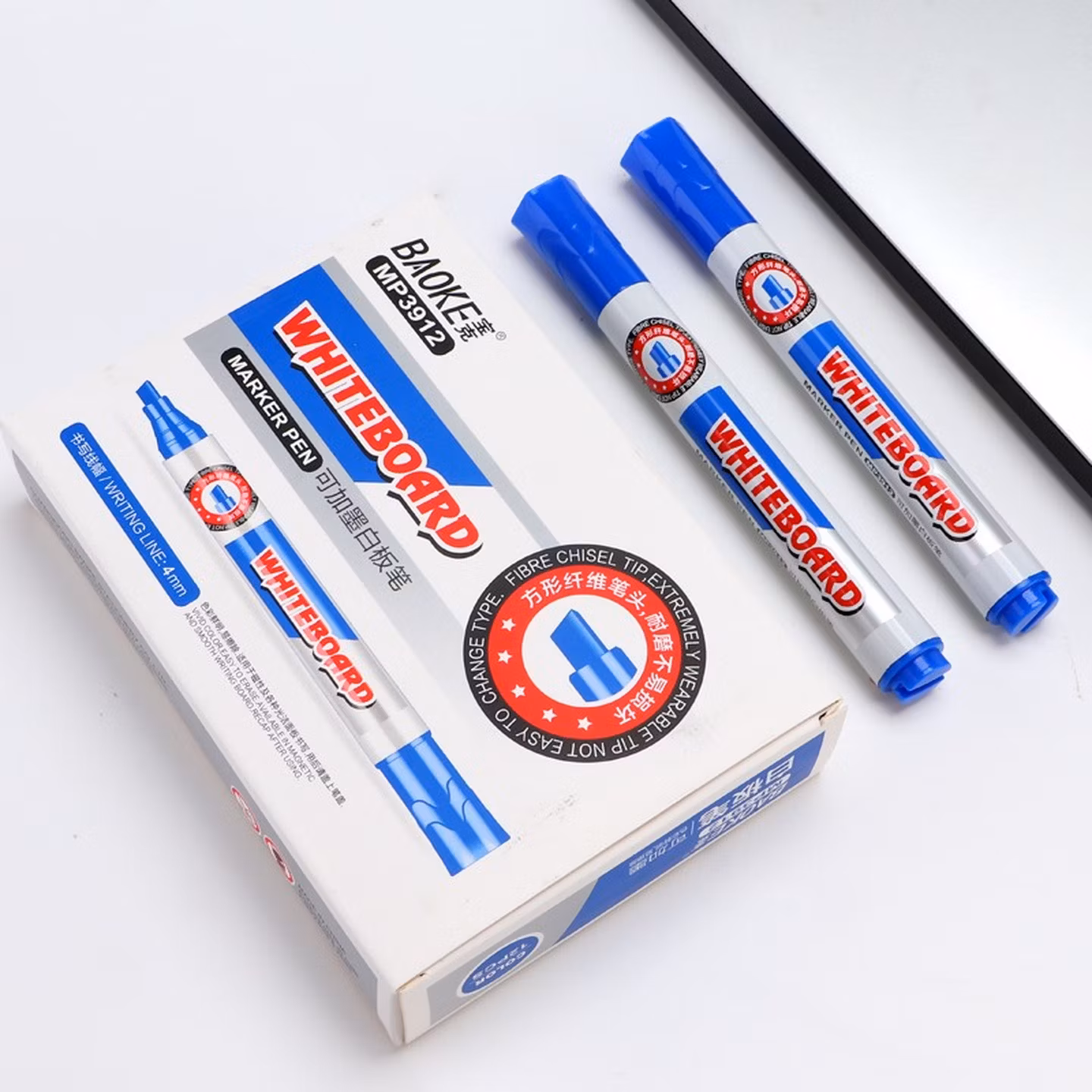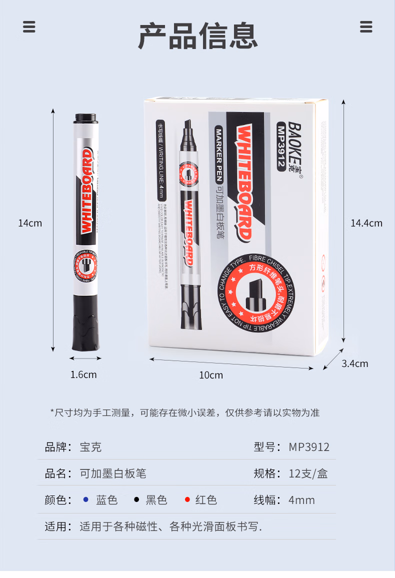 宝克(BAOKE)MP3912 白板笔 蓝色可加墨白板笔 易写易擦 办公会议教学 12支/盒