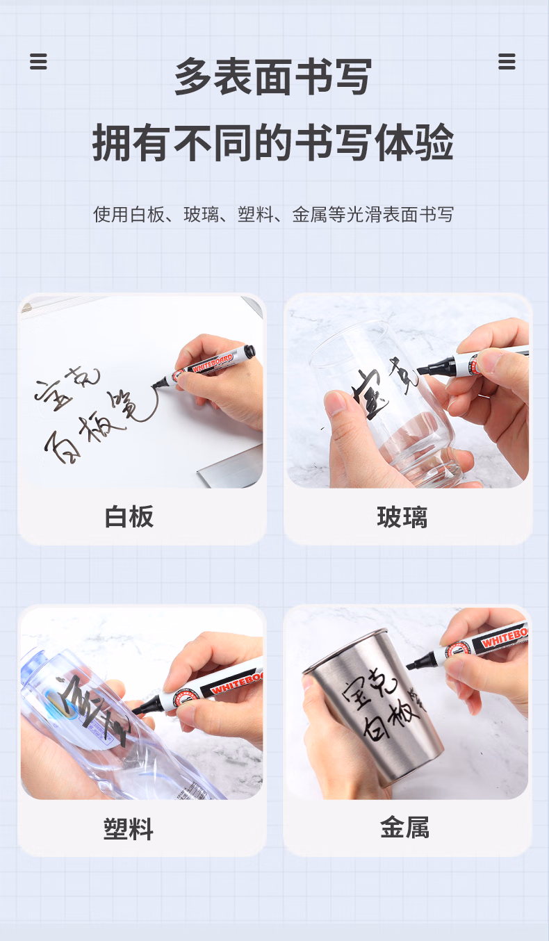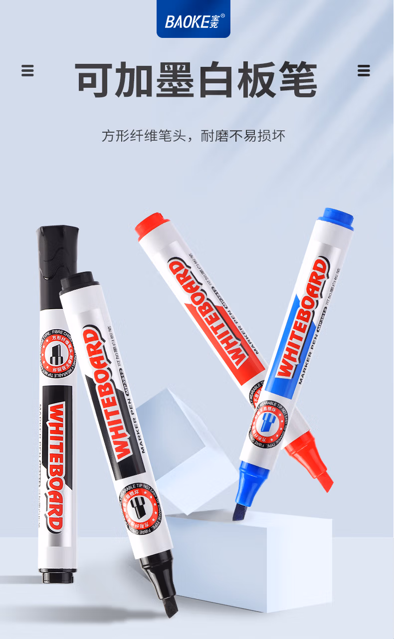 > 宝克(BAOKE)MP3912 白板笔 蓝色可加墨白板笔 易写易擦 办公会议教学 12支/盒