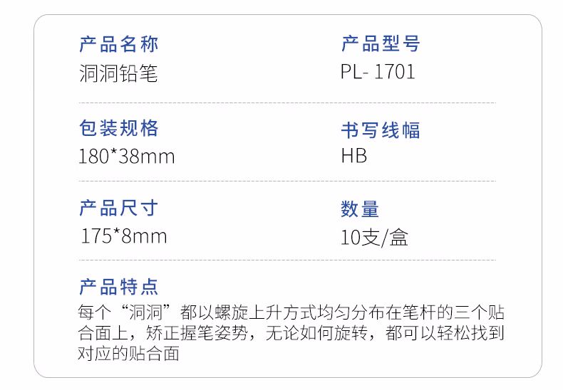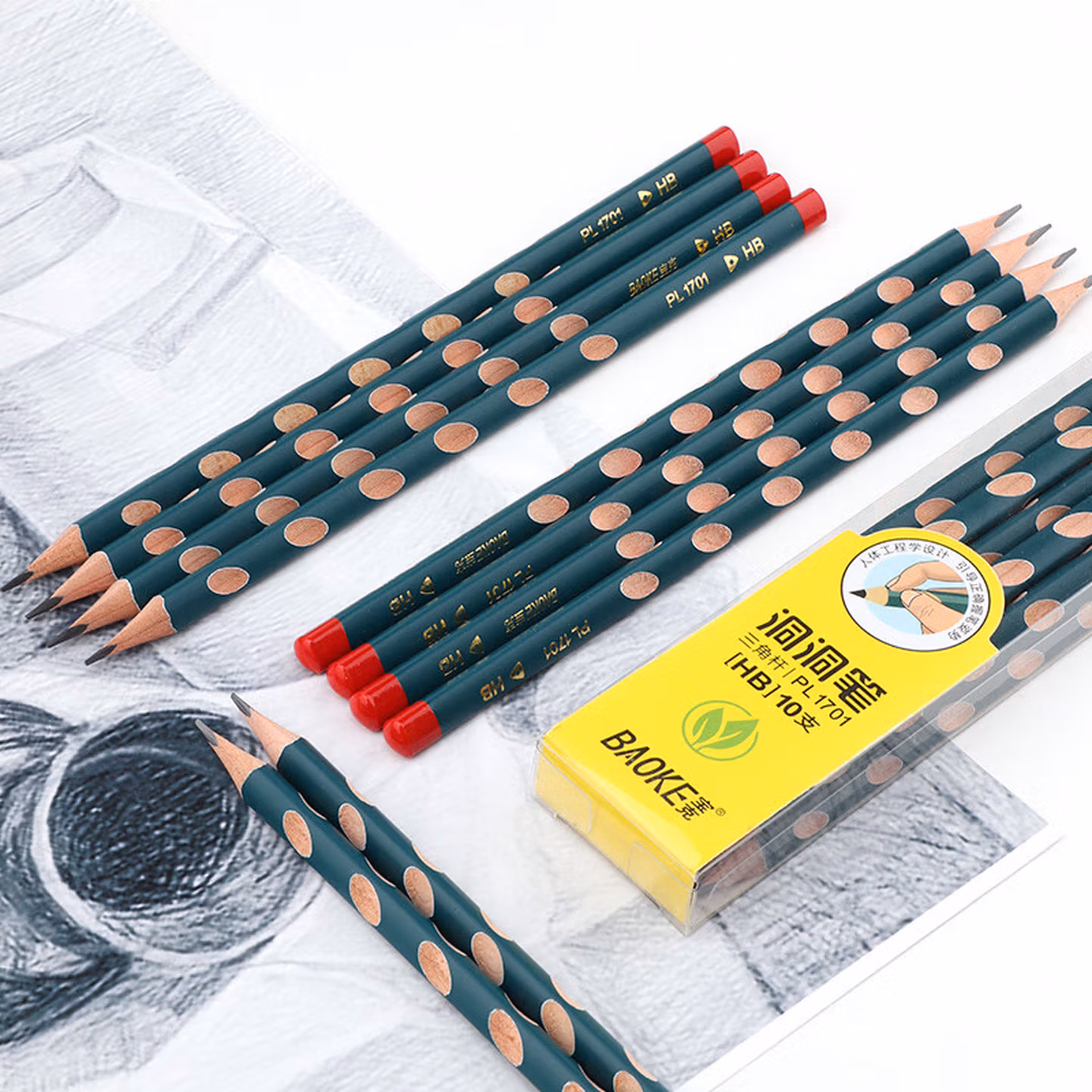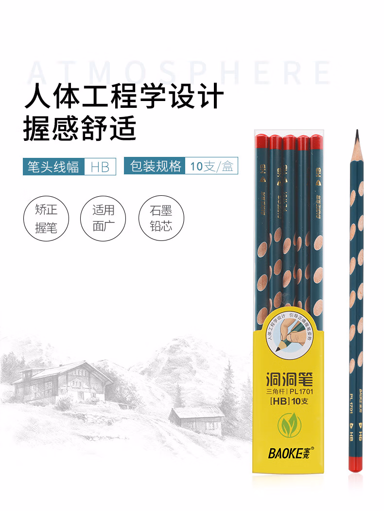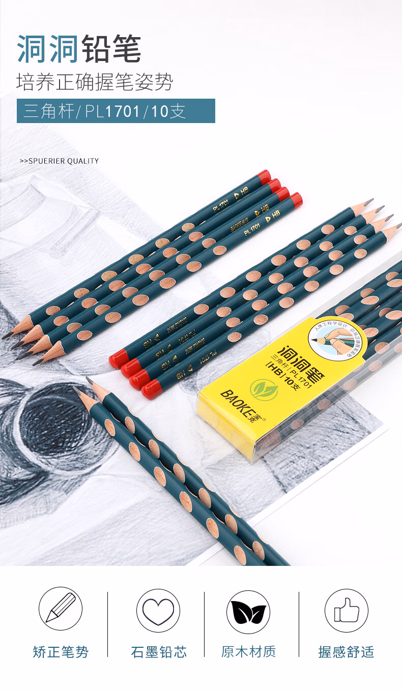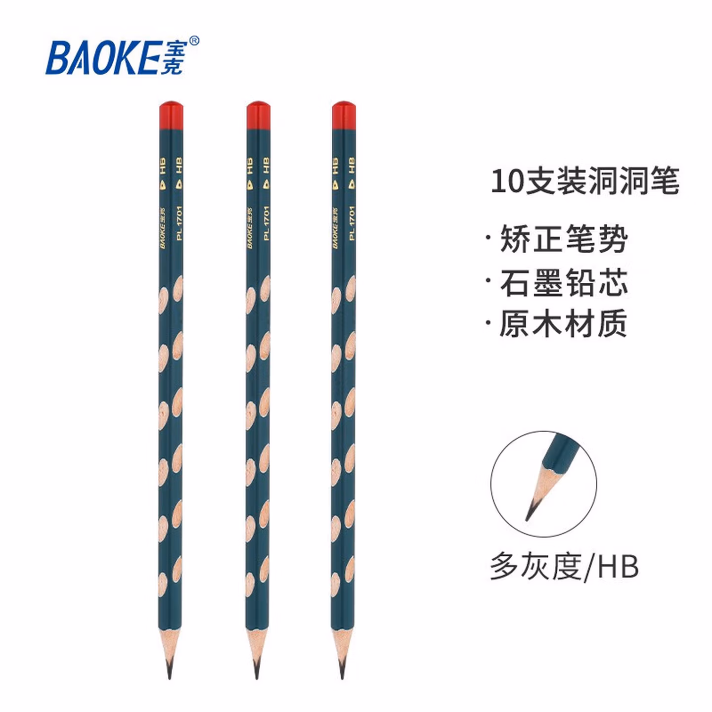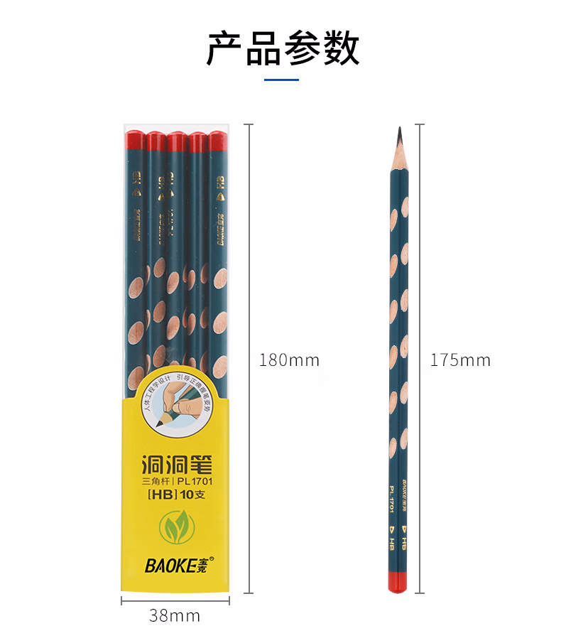 宝克宝克(BAOKE)PL1701 洞洞铅笔HB三角杆铅笔 学生练字笔 儿童矫姿铅笔 10支/盒【2盒】