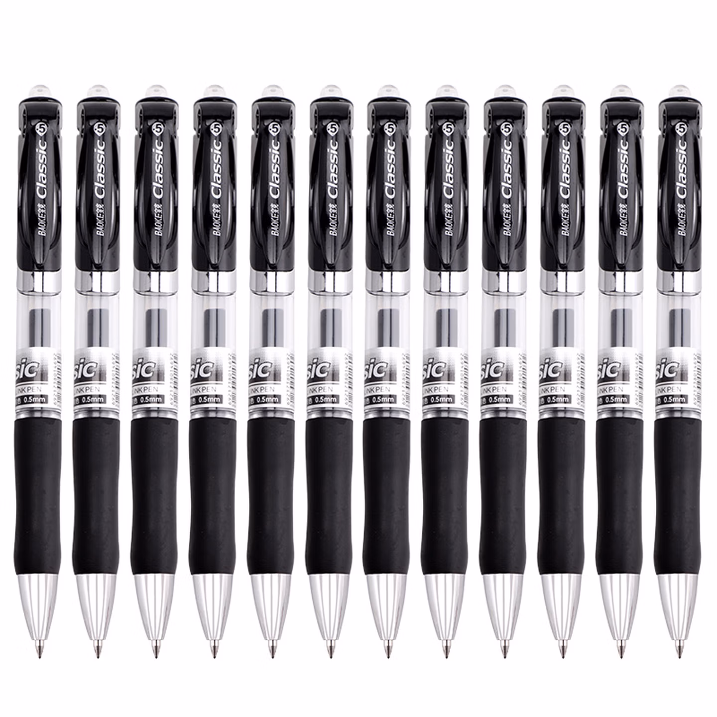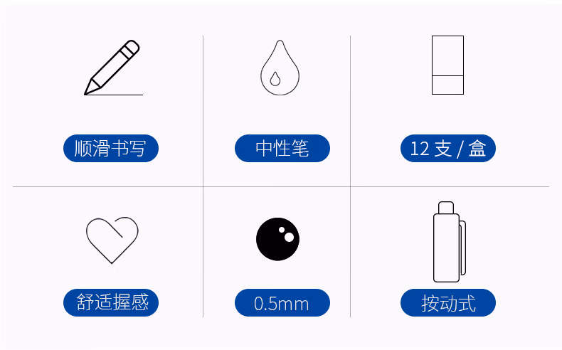 > 宝克(BAOKE)A35 0.5mm蓝色按动中性笔办公签字笔 子弹头水笔12支/盒