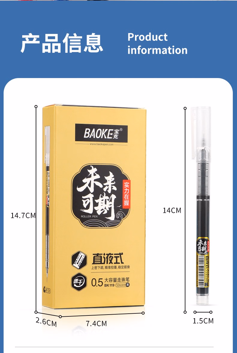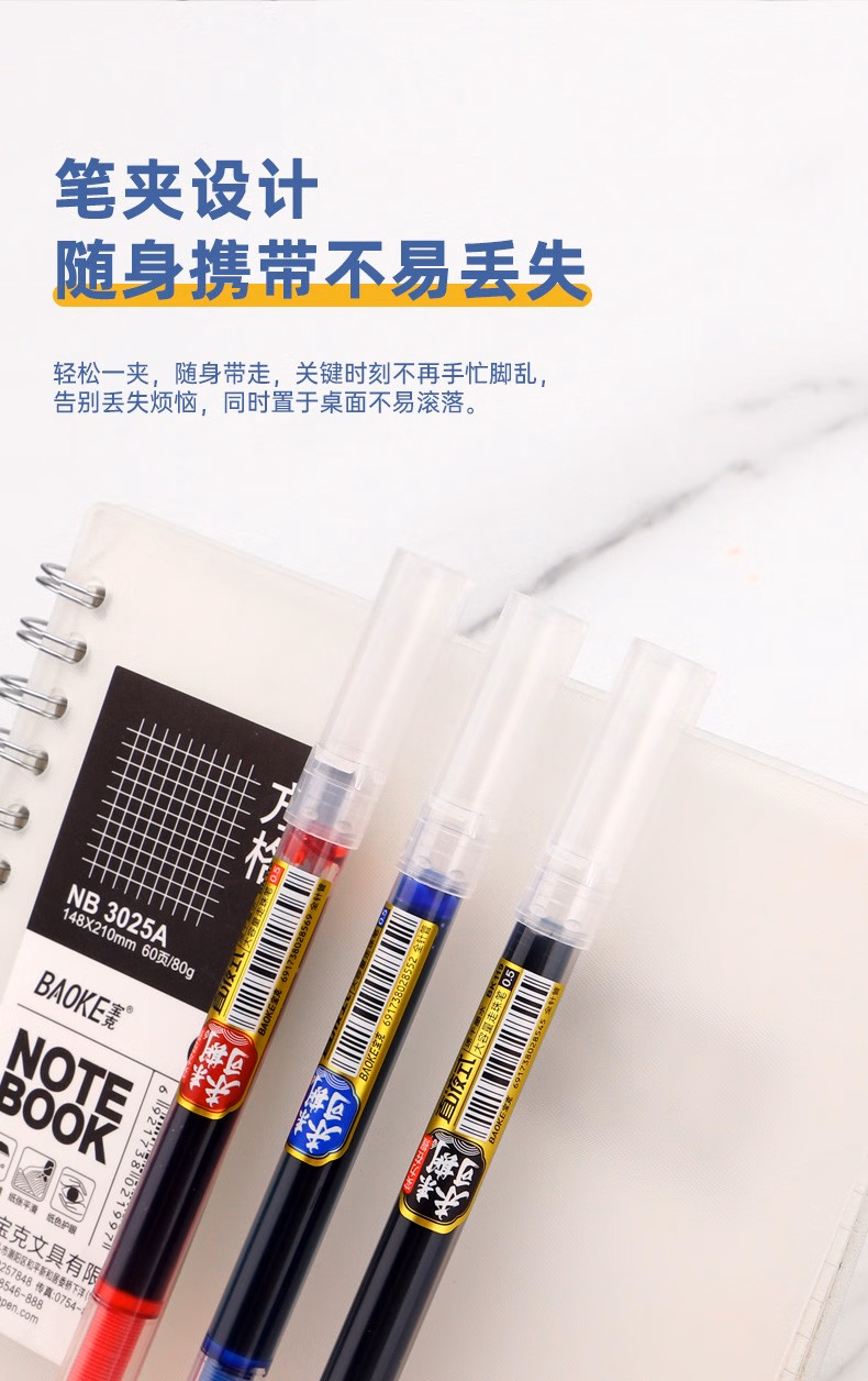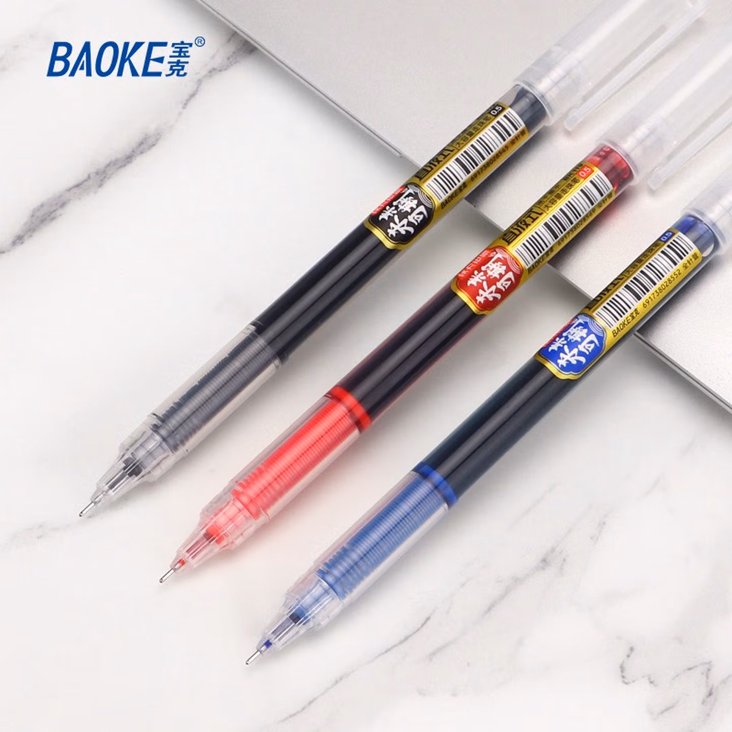 > 宝克(BAOKE)KJ03 抑菌全针管直液式中性笔 0.5mm学生水笔办公签字笔 黑色 12支/盒