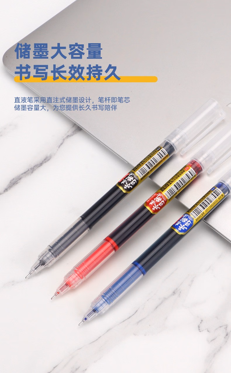 宝克(BAOKE)KJ03 抑菌全针管直液式中性笔 0.5mm学生水笔办公签字笔 黑色 12支/盒