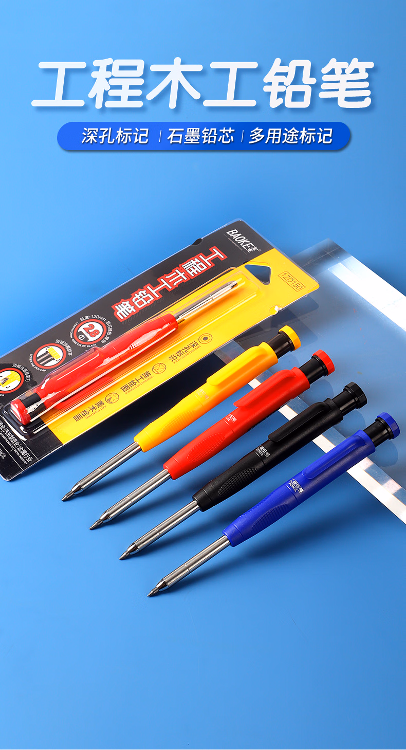 > 宝克(BAOKE)1ZD150 工程木工铅笔 2.8mm 工程笔 深孔标识自动铅笔标记画线绘图铅笔 笔杆红 1支/卡