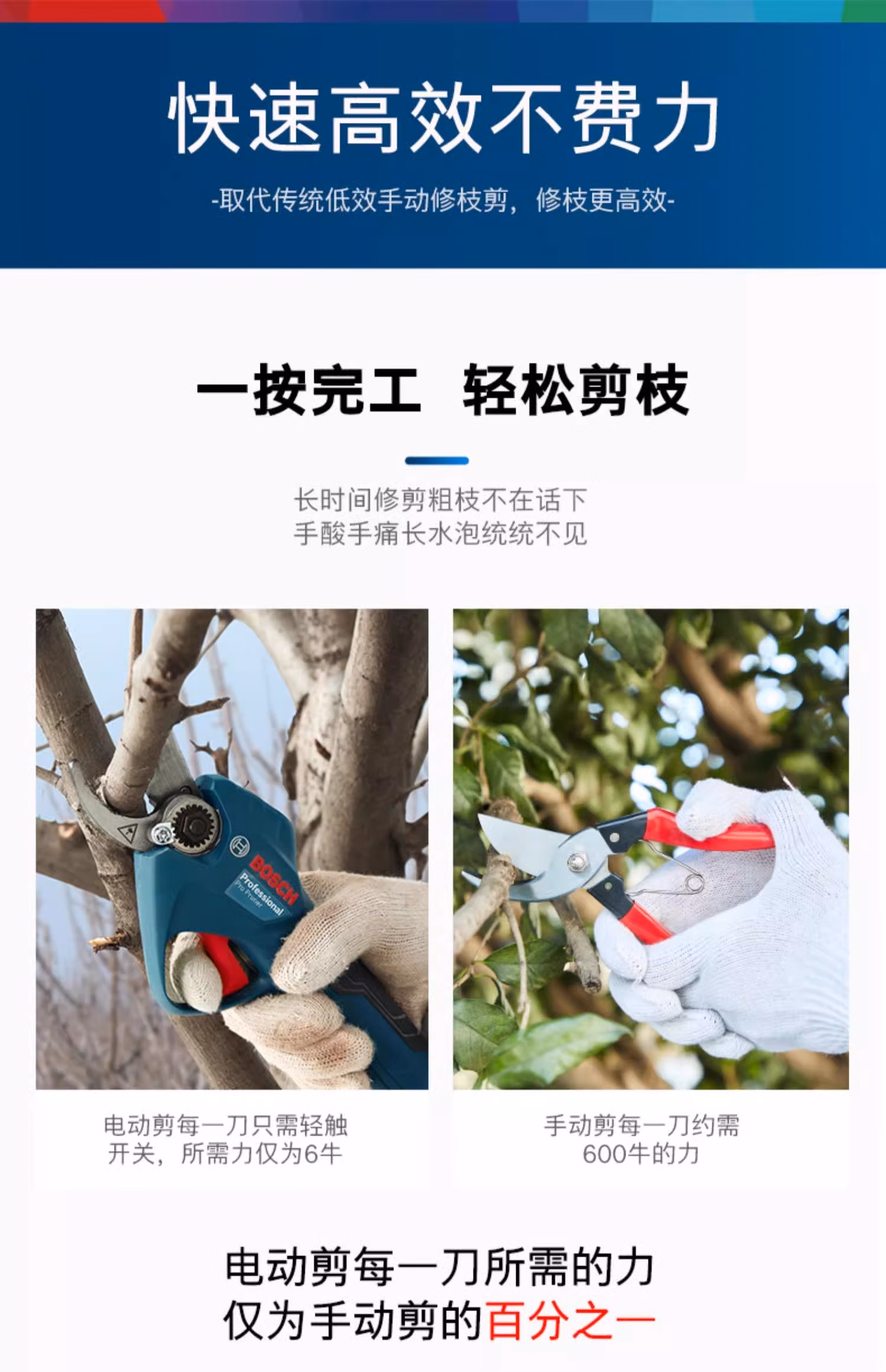 博世博世园艺剪刀修枝剪果树园林树枝修剪博士充电式锂电剪电动修枝剪 电动修枝剪2.0ah单电