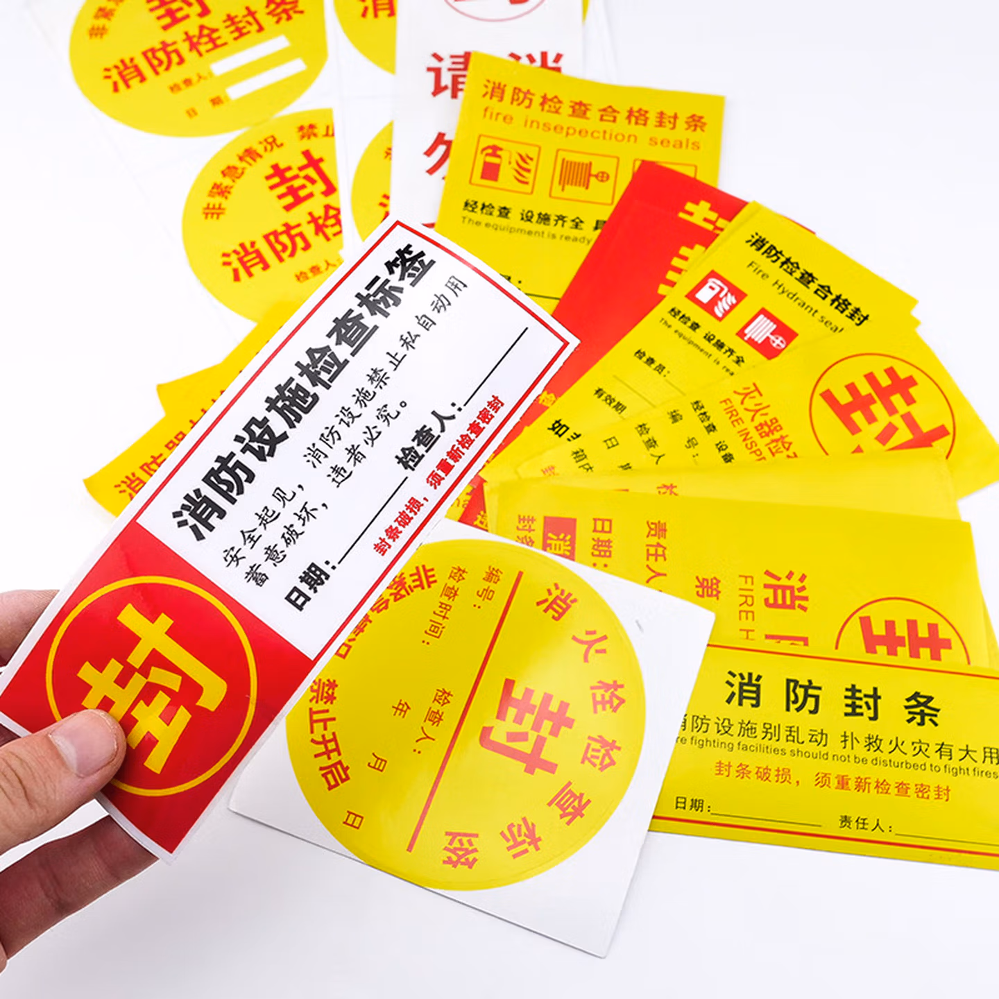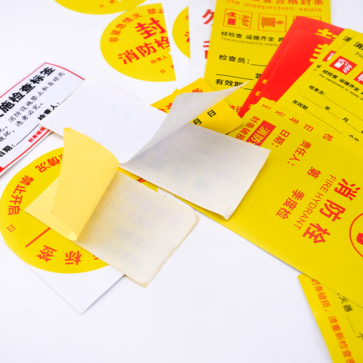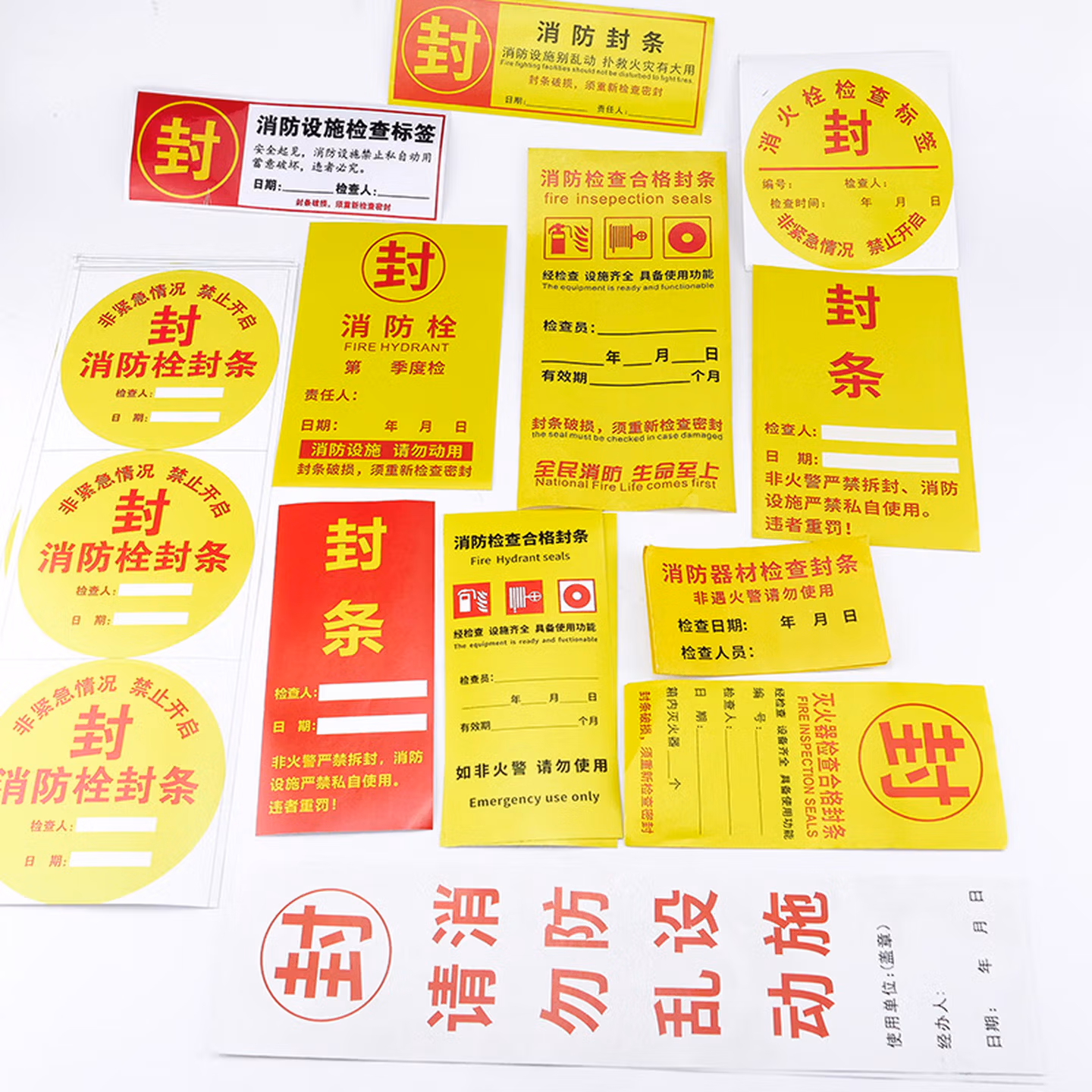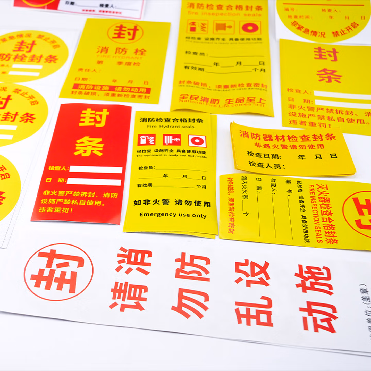 > 海斯迪克 HKL-234 消防器材检查消防栓箱门贴封条 不干胶标签 E款15*7cm 100张