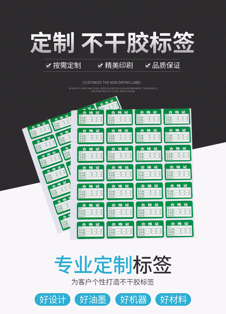 > 海斯迪克 HK-5135 合格证标签贴纸 绿色不干胶 40×25mm(1000个)