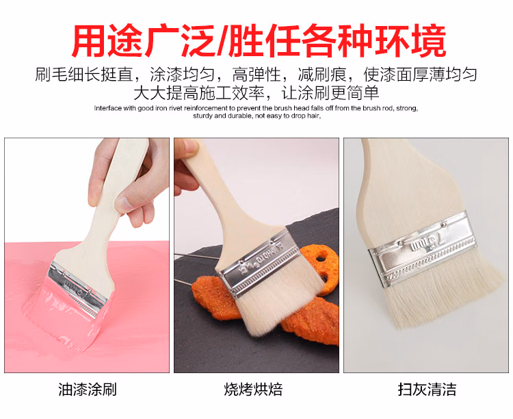 羊毛刷子油漆乳胶漆涂料刷木质长柄软毛刷清洁烘焙烧烤刷子不掉毛 8寸加厚葫芦柄羊毛刷100把