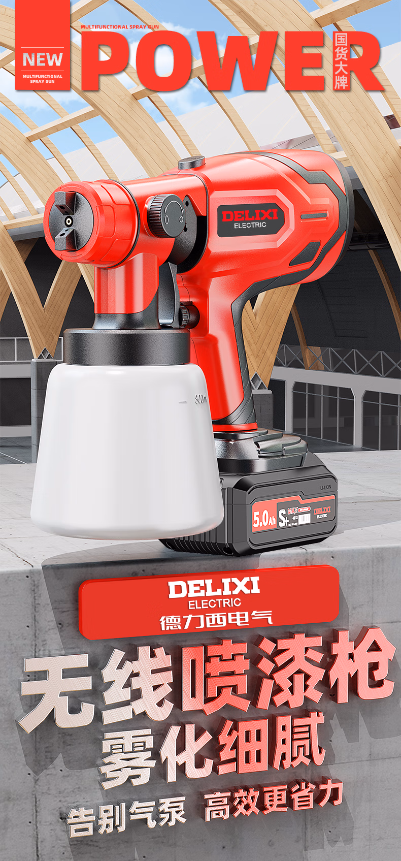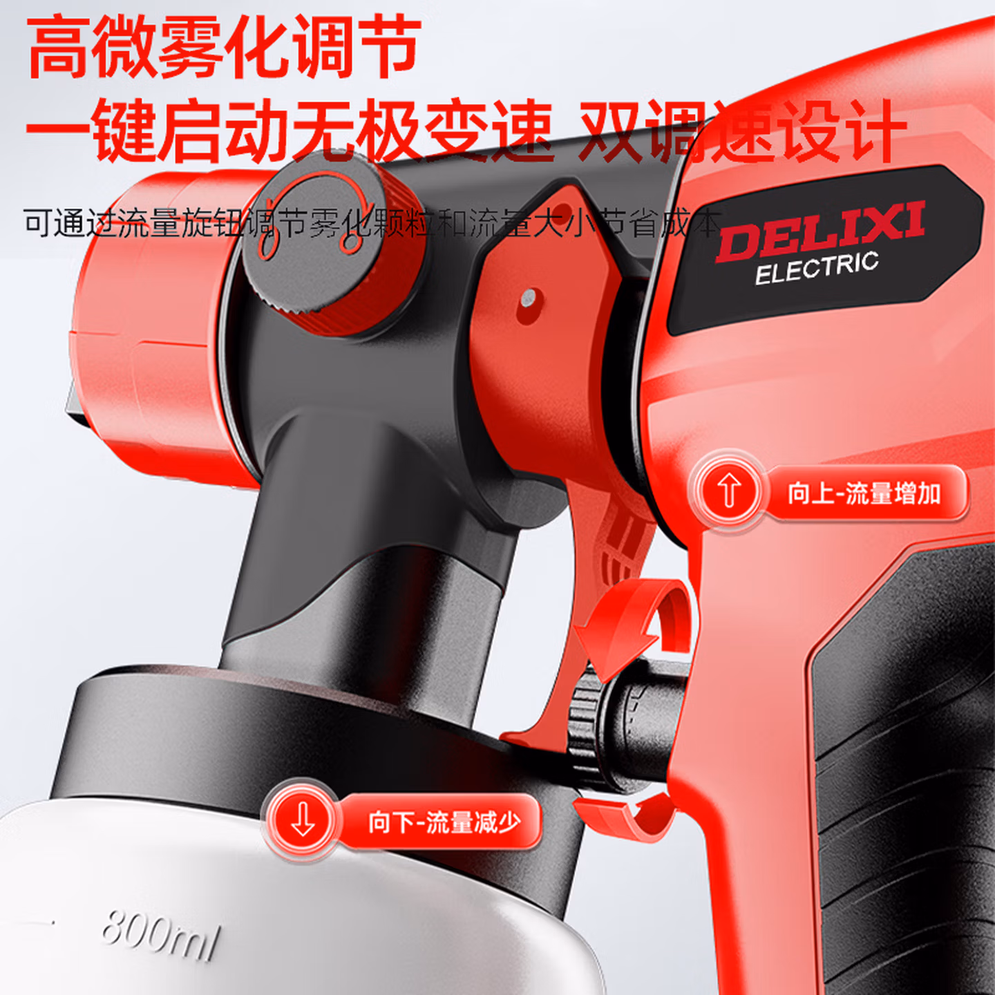 > 德力西电动喷漆枪油漆喷枪乳胶漆喷涂机锂电池家用喷漆一体机高雾化喷壶 调速喷漆枪6.0一电【5喷嘴+1个喷壶】