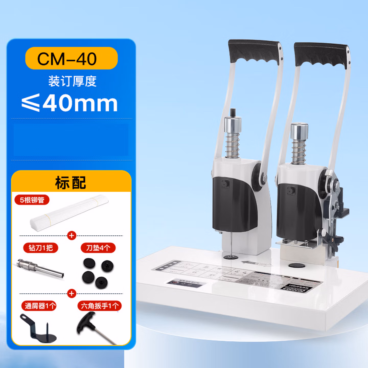 > 安达通 胶装机 小型凭证装订机热熔电动财务档案文件 CM40铆管105根钻刀2把刀垫4个通屑器1个六角扳手