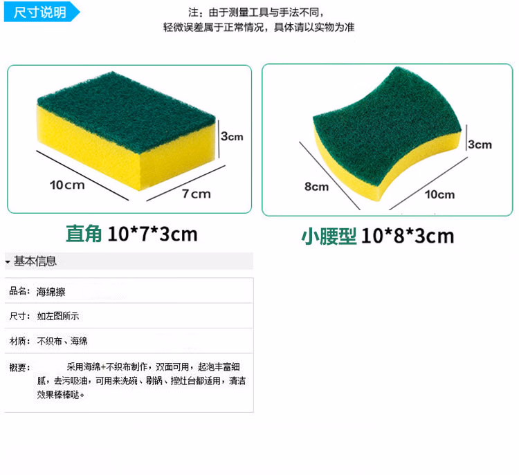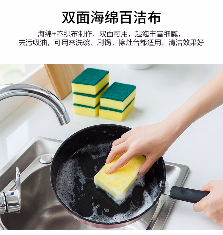 > 安达通 海绵百洁布 纳米海绵擦抗菌吸水去油污清洁洗碗布厨房抹布 方形10个装