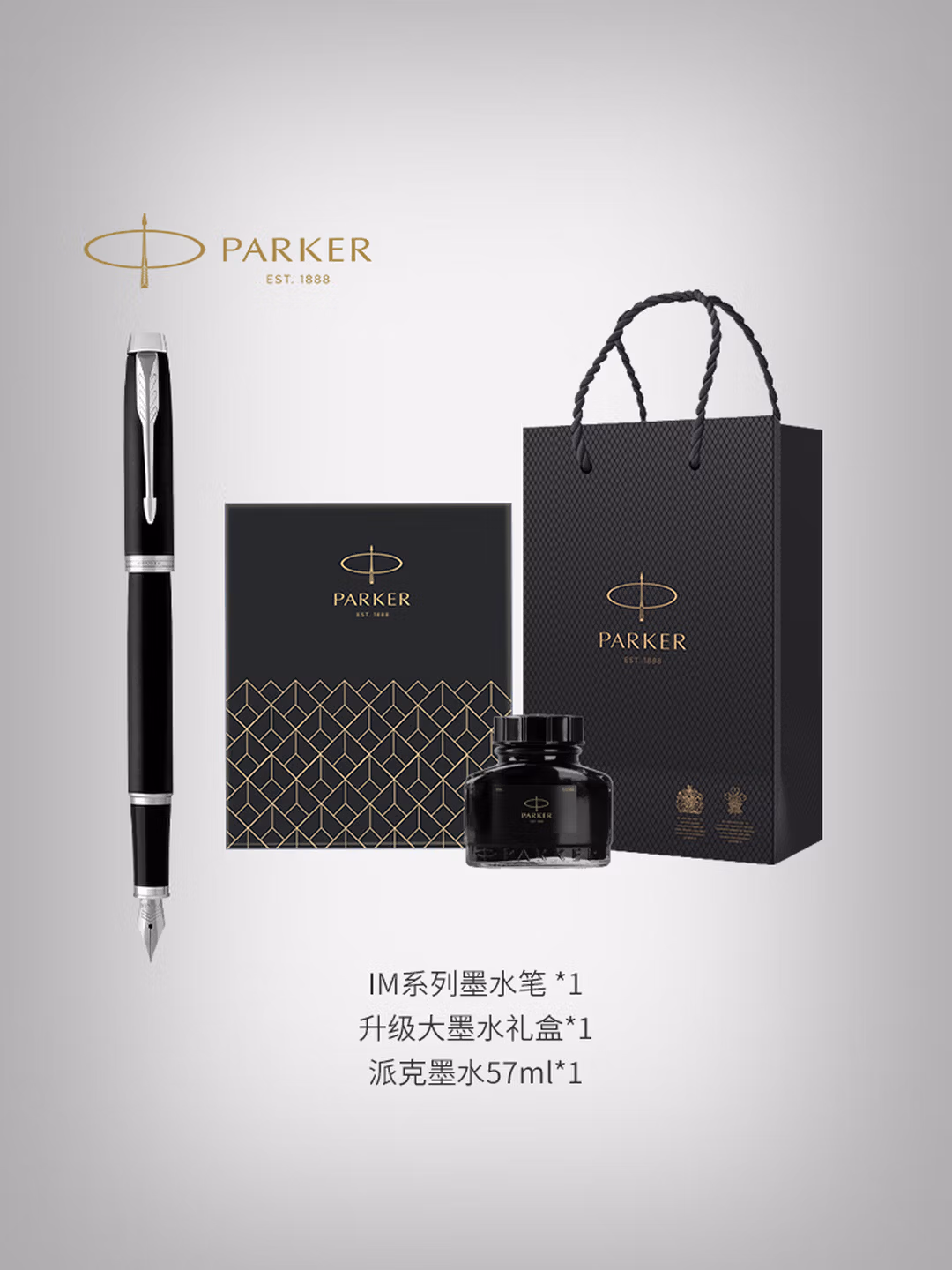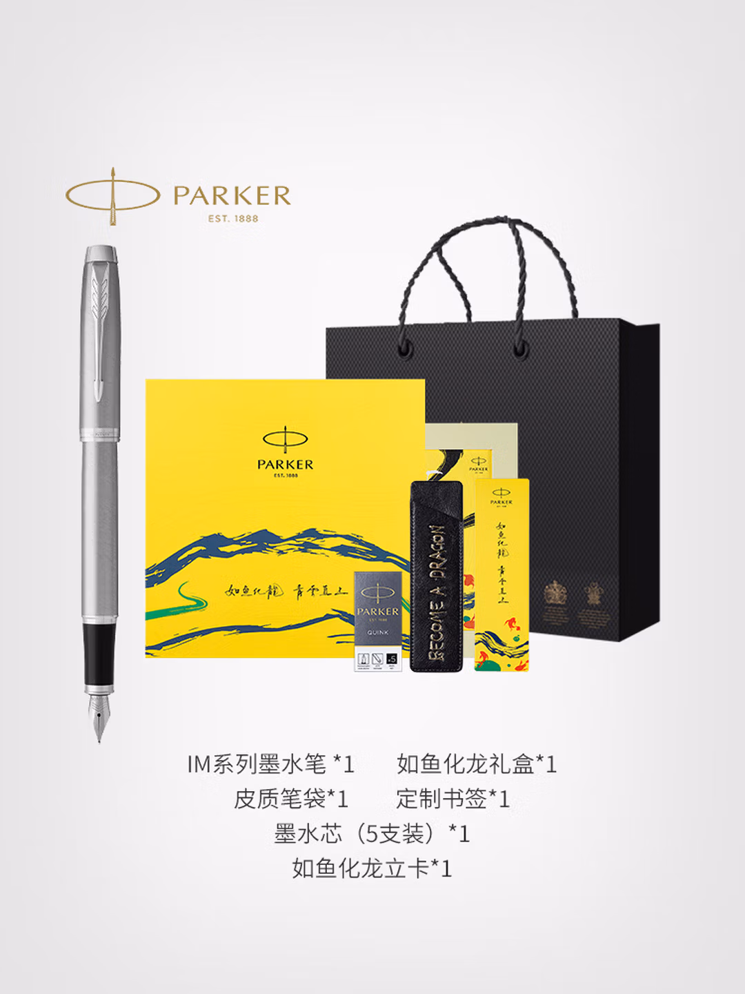 > 派克(PARKER)钢笔墨水笔新款成人练字高端文创签字笔礼盒商务定制刻字男女送老师生日礼物伴手礼轻奢礼品纪念品 IM浅石灰白墨水笔【如鱼化龙礼盒】