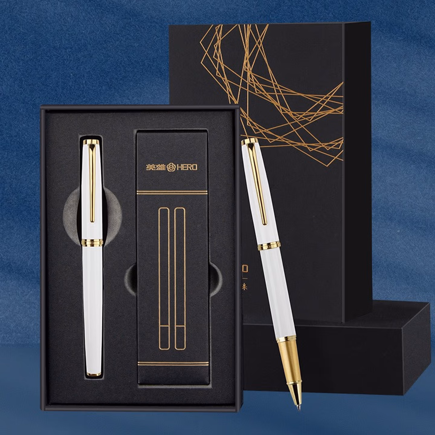 > 英雄(HERO)宝珠笔荣耀礼盒装商务礼品男女生日礼物签字笔H652(内置2支笔芯) 黑色
