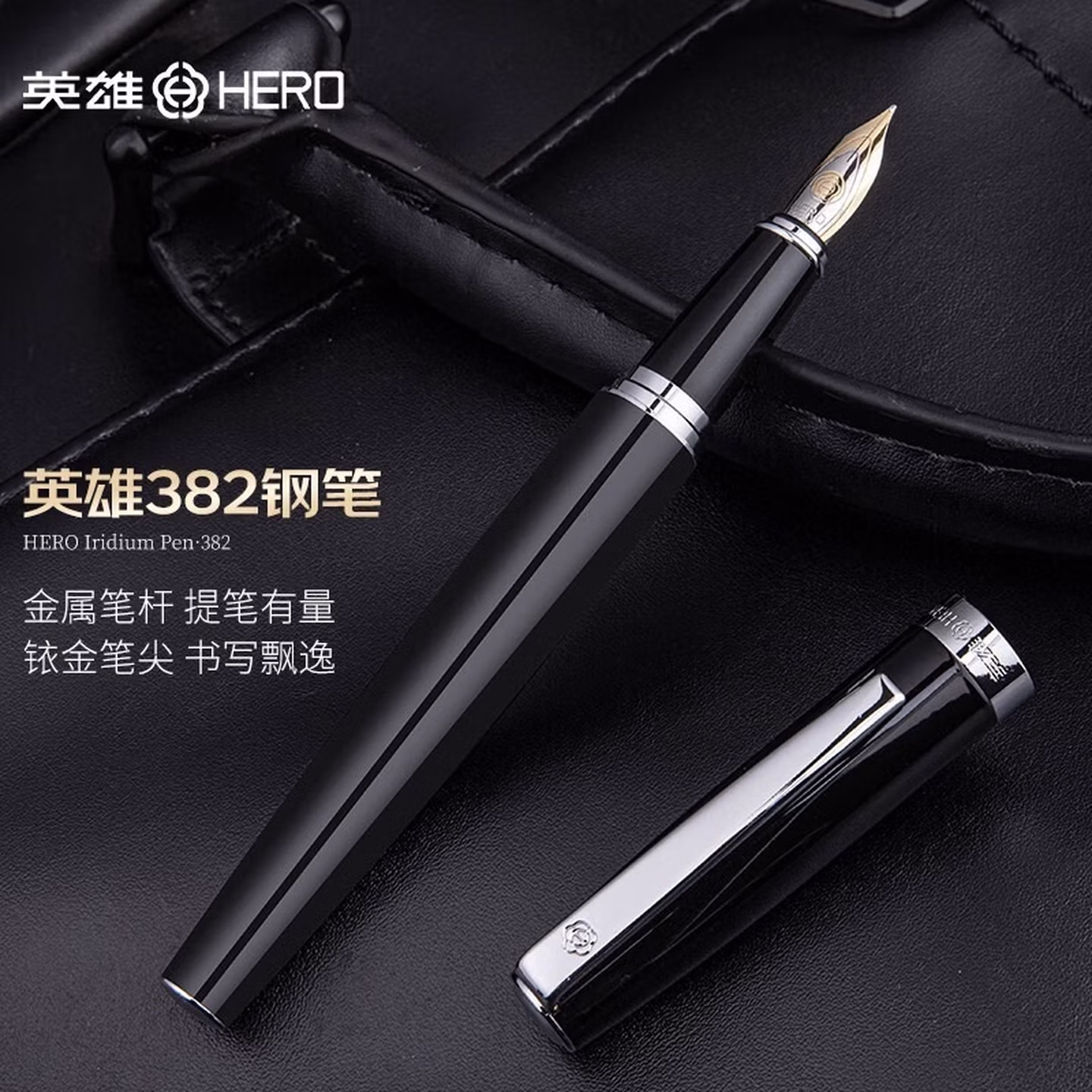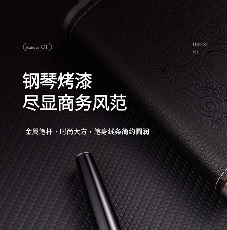 > 英雄(HERO)382钢笔明尖美工笔学生硬笔书法练字铱金笔签字墨水笔送礼礼物钢笔 黑色弯尖美工笔(约0.8mm)