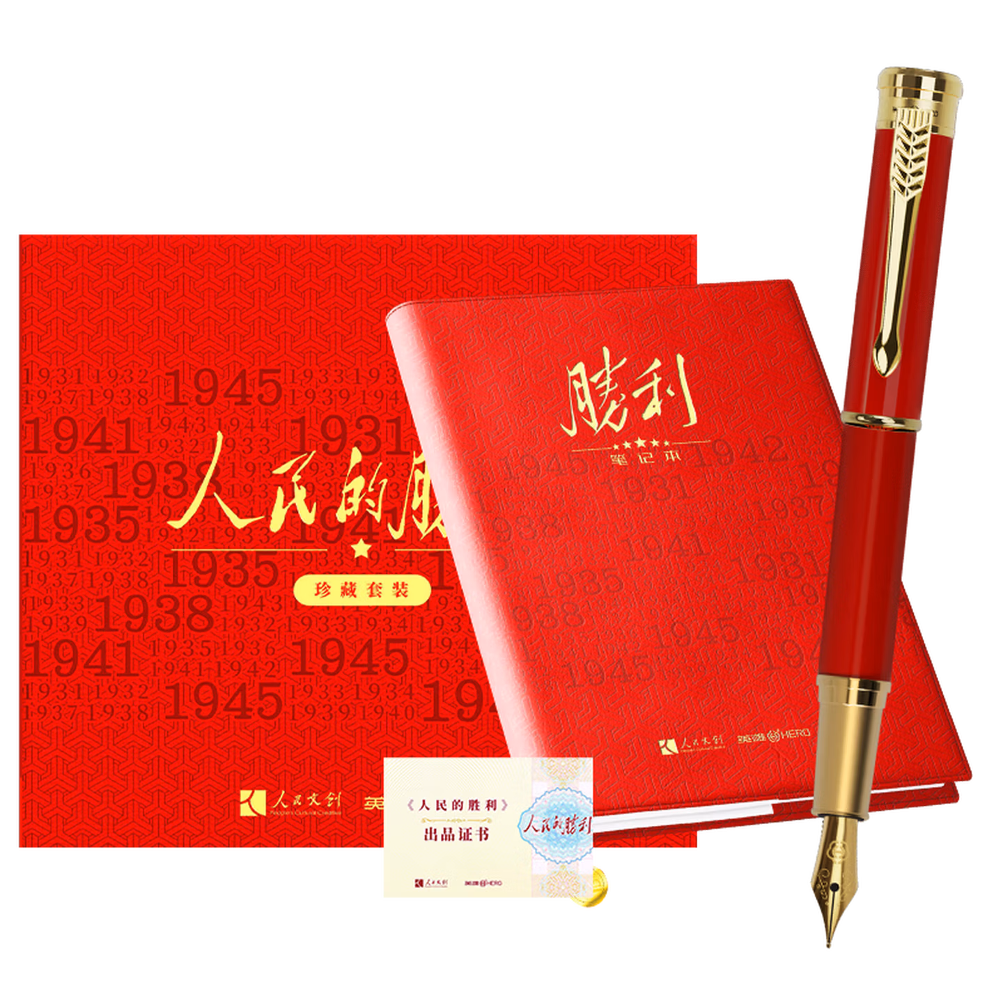 > 英雄(HERO)钢笔 人民的胜利 人民文创纪念版套装 收藏商务高端纪念礼盒 红色礼盒 珍藏套装