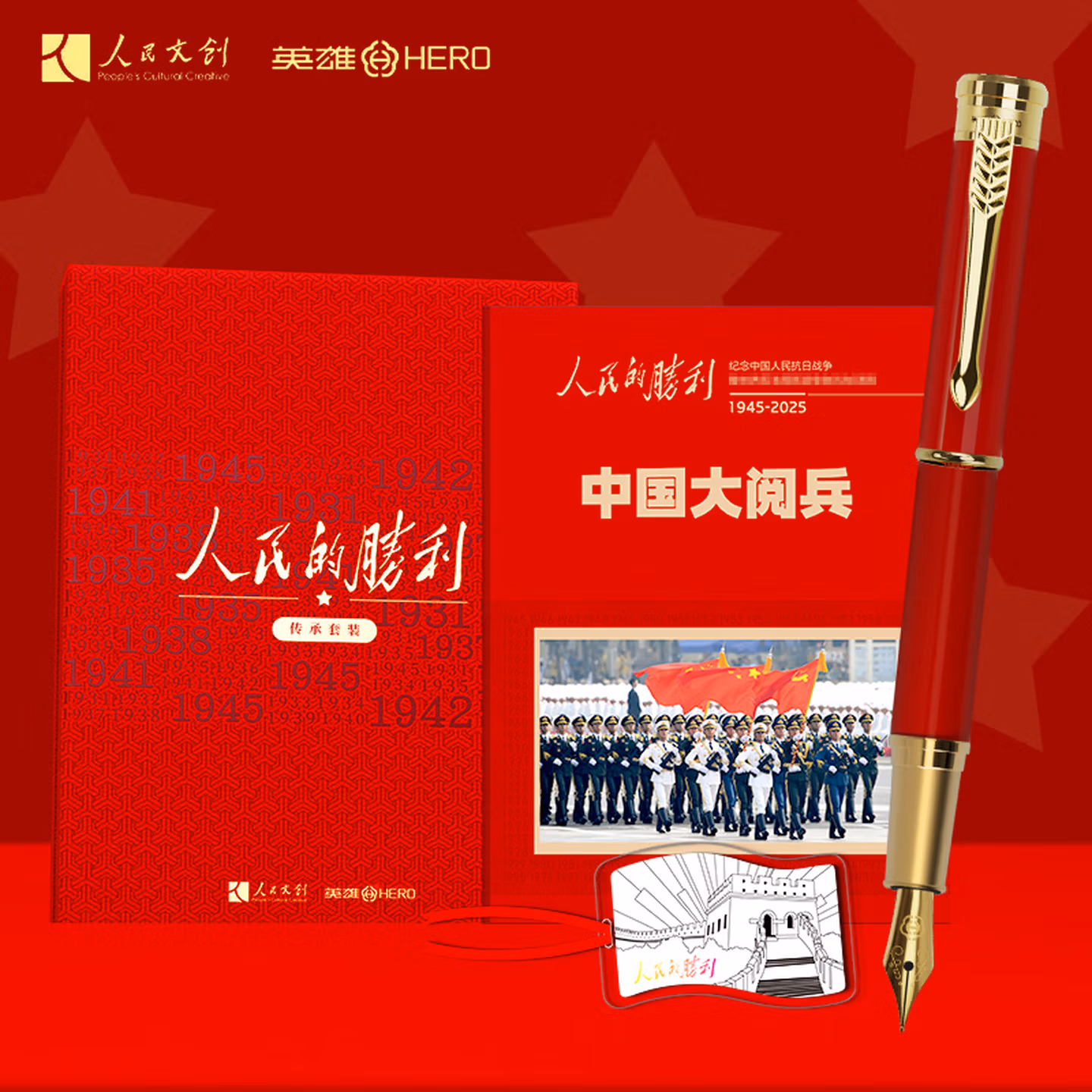 英雄(HERO)钢笔 人民的胜利 人民文创纪念版套装 收藏商务高端纪念礼盒 红色礼盒 珍藏套装