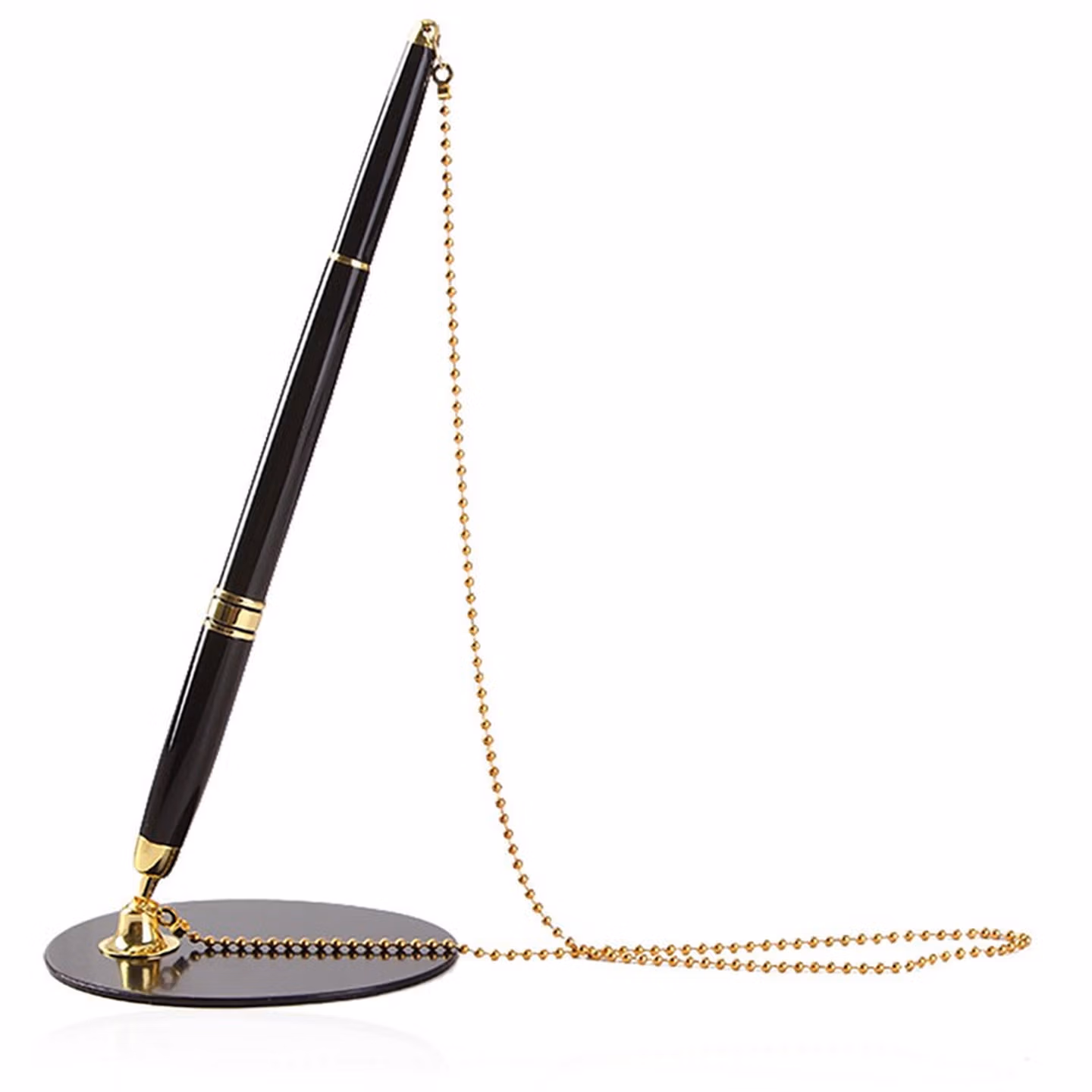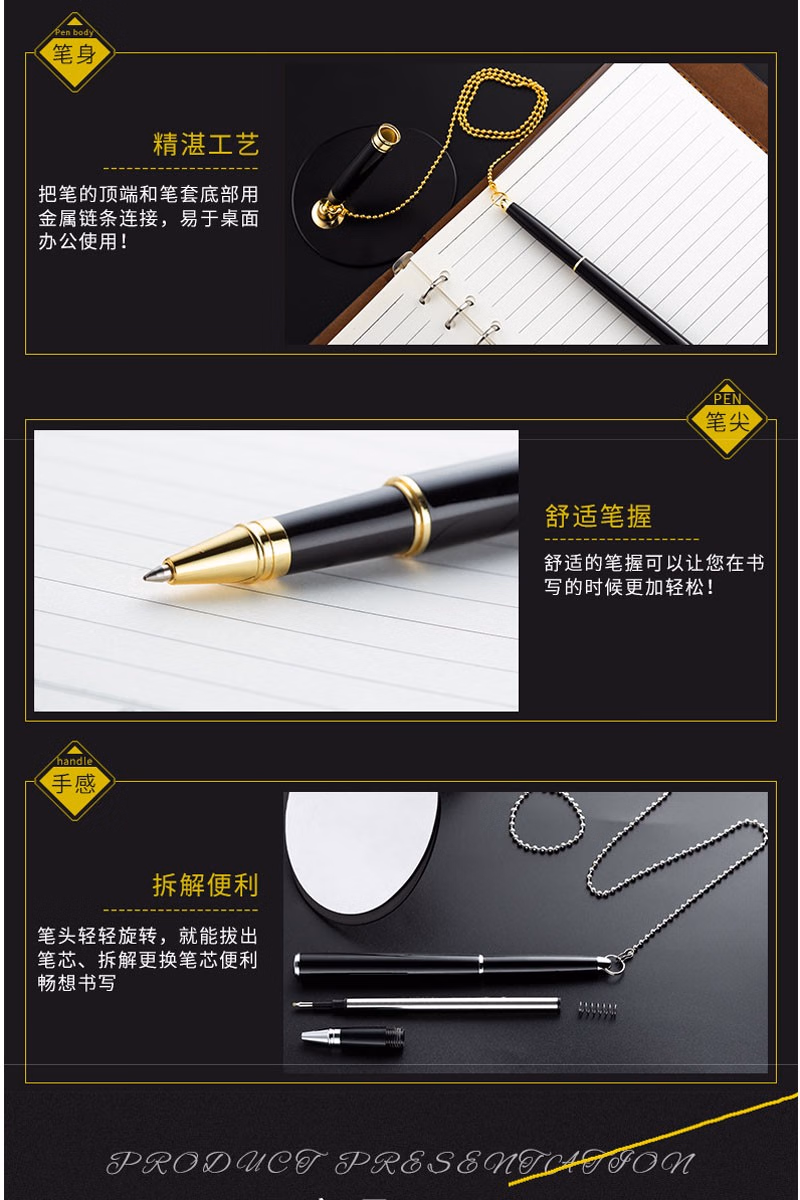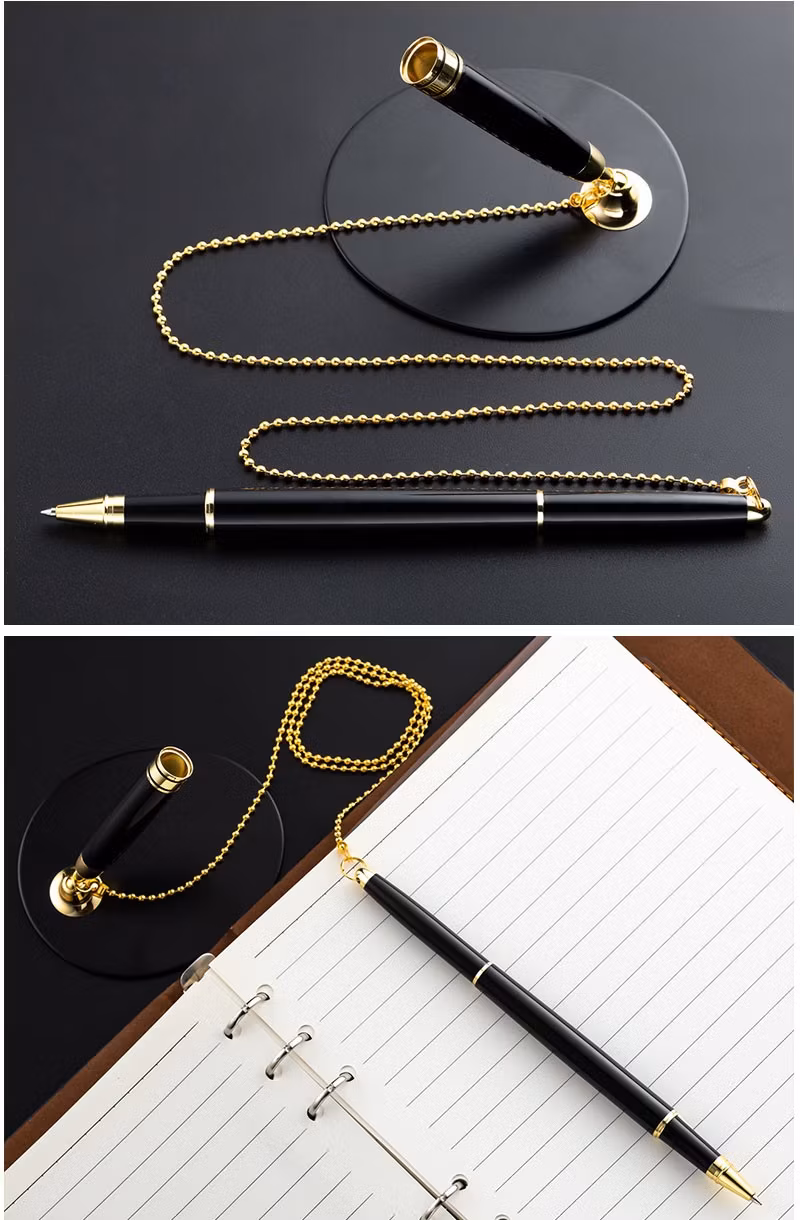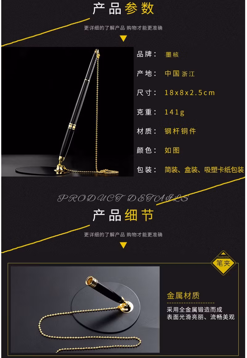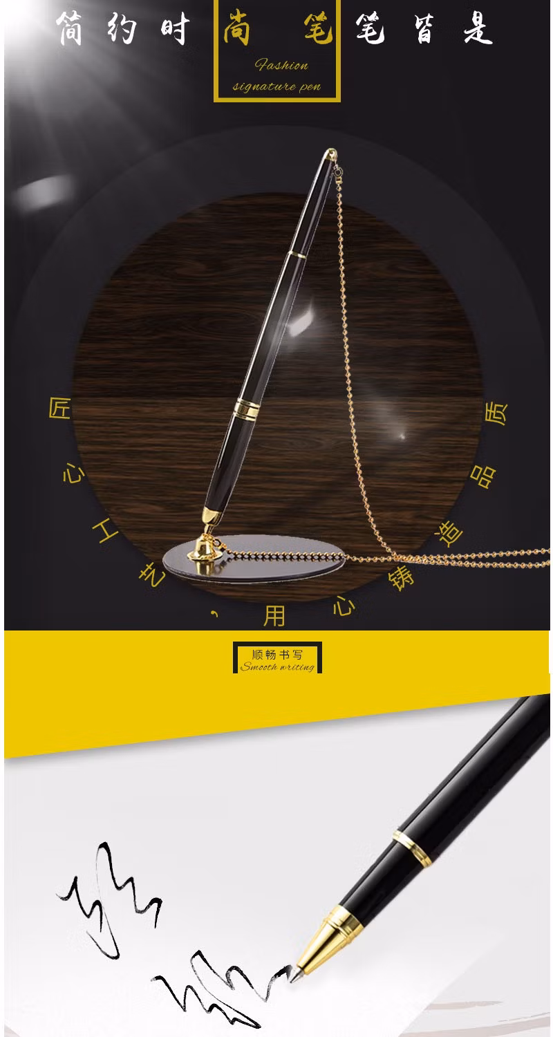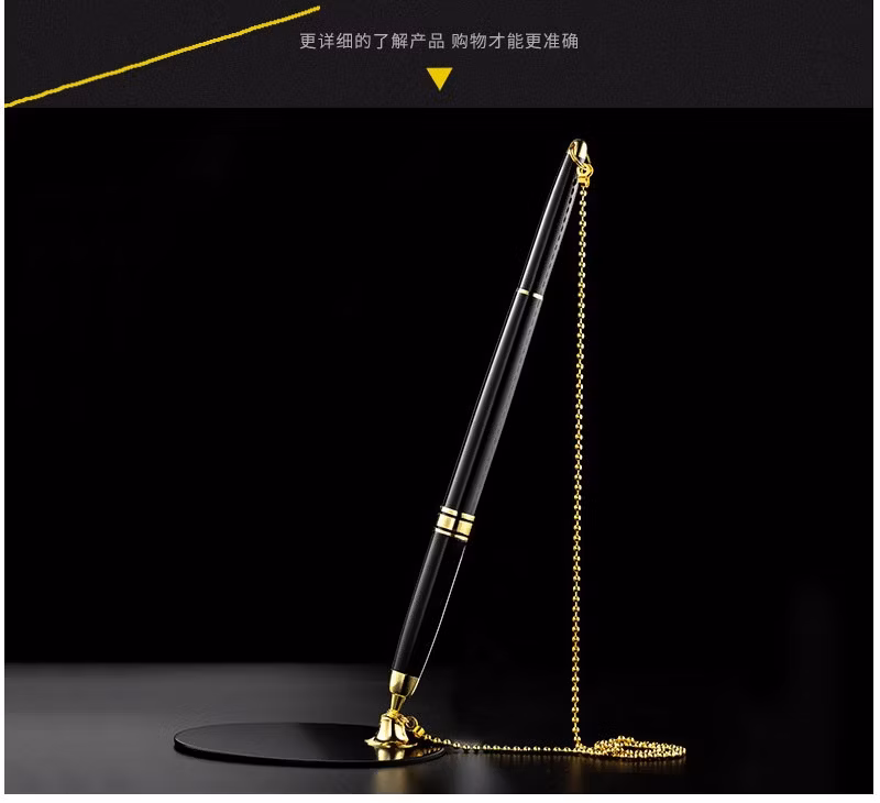 兴爱丽 金属签字笔固定签字笔吧台笔银行前台中性笔办公用品批发柜台桌面服务粘桌笔固定笔座 激光刻字 金色