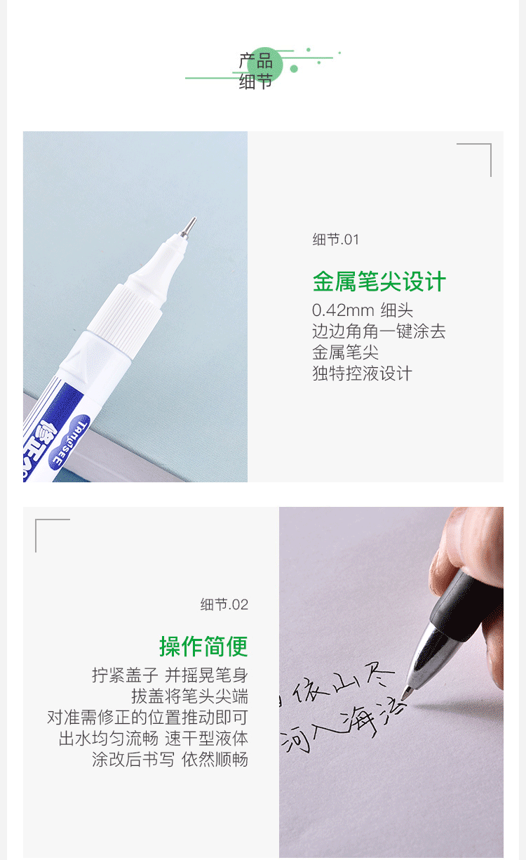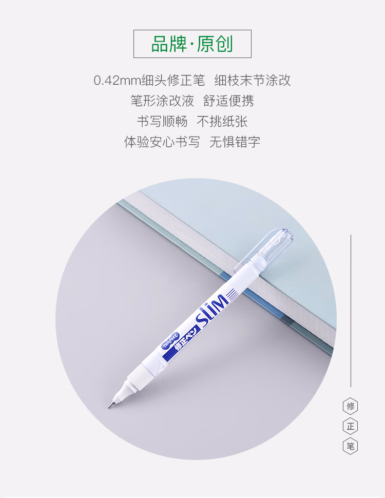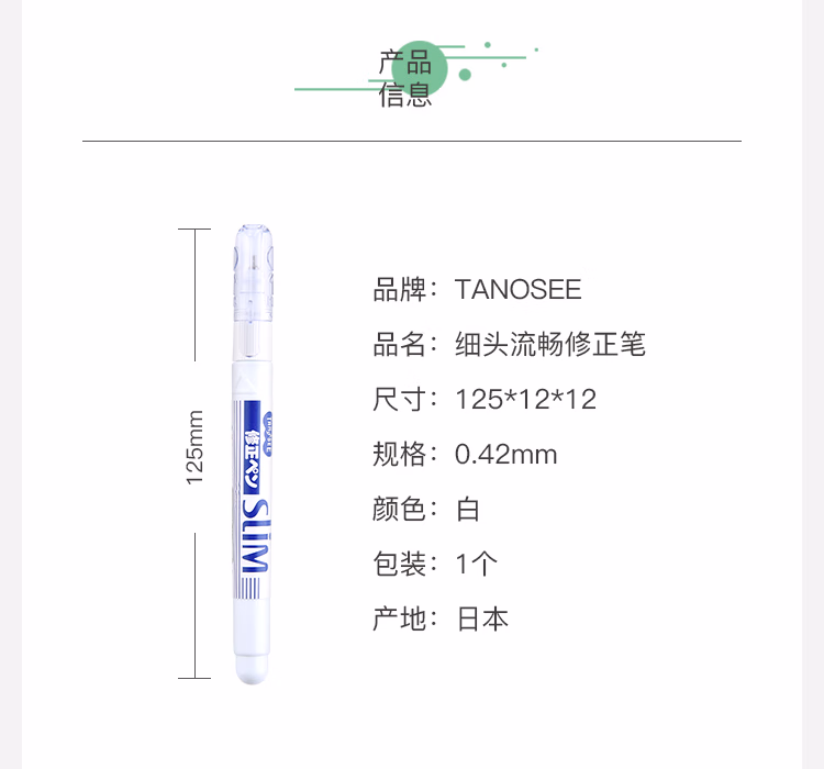 > TANOSEE开学必备 进口环保笔形修正液极细不锈钢笔头涂改液改正液学生修正笔修正带 0.42mm 1个ZL7F1OTS