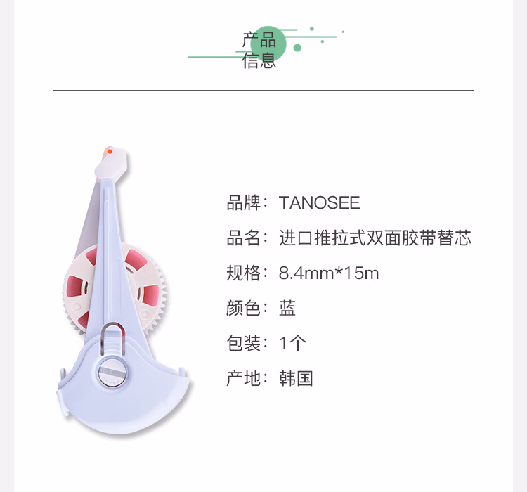> TANOSEE乐如诗 进口双面胶替芯 推拉型修正带式点点胶带替换芯 学生手账办公用品8.4mm*15m 1个装TGK-TNR15