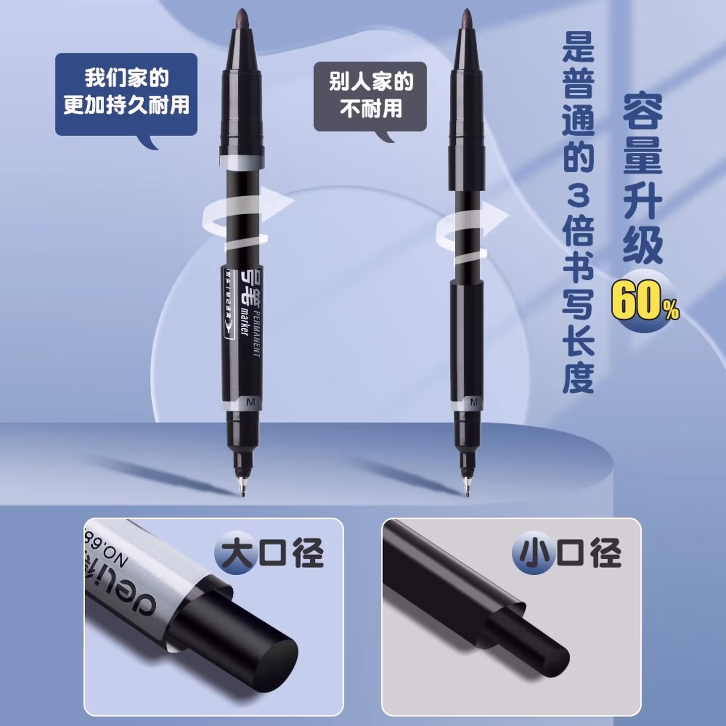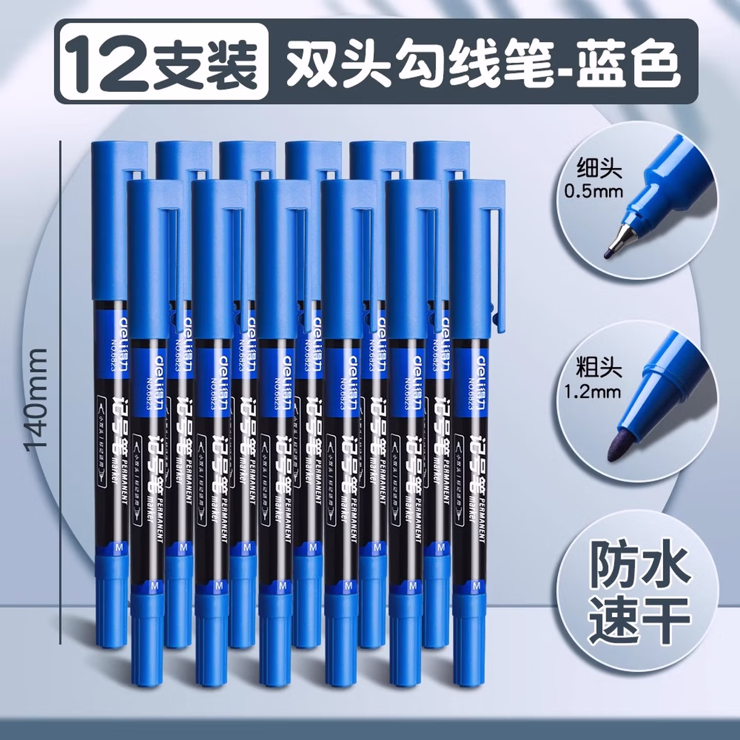 > 得力(deli)双头记号笔黑色勾线笔幼儿园不掉色防水防油儿童美术绘画专用油性学生工笔水性绘画大头笔 【12支蓝】双头/防水速干