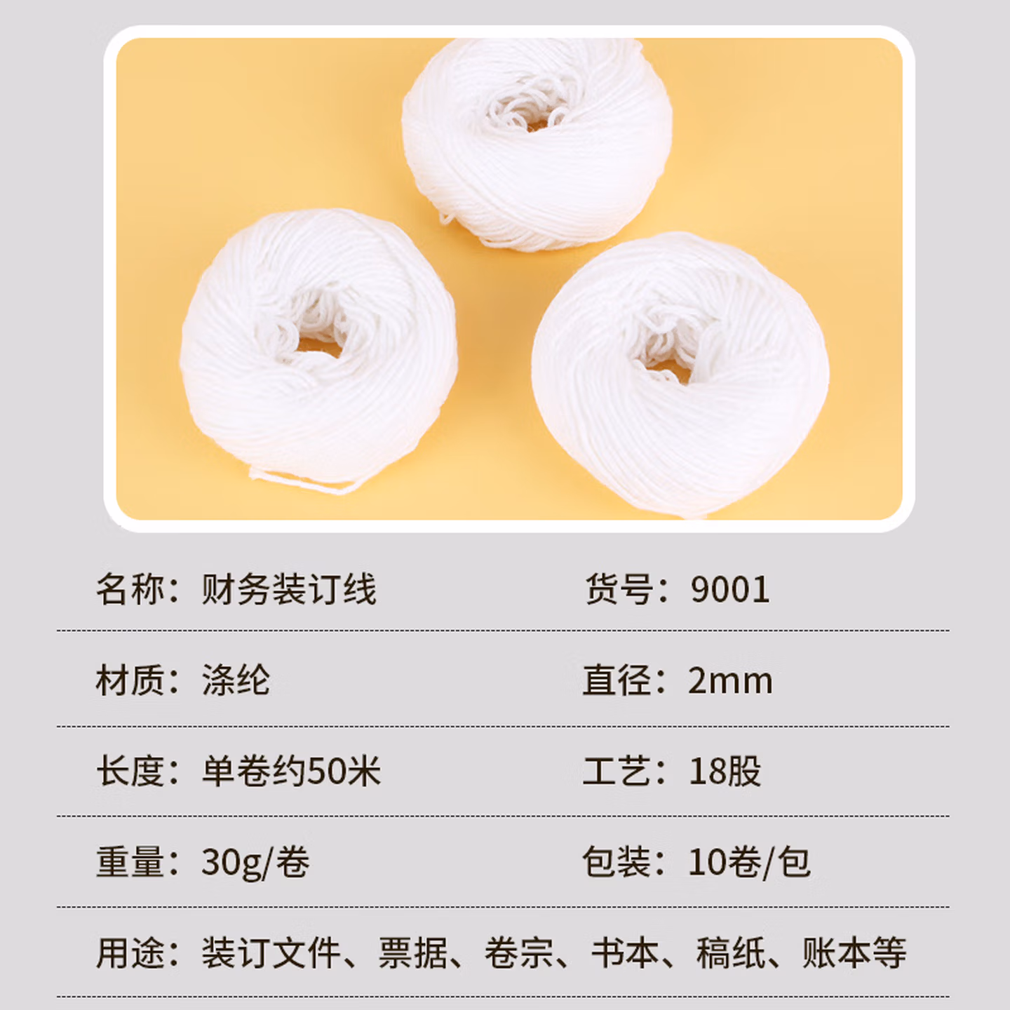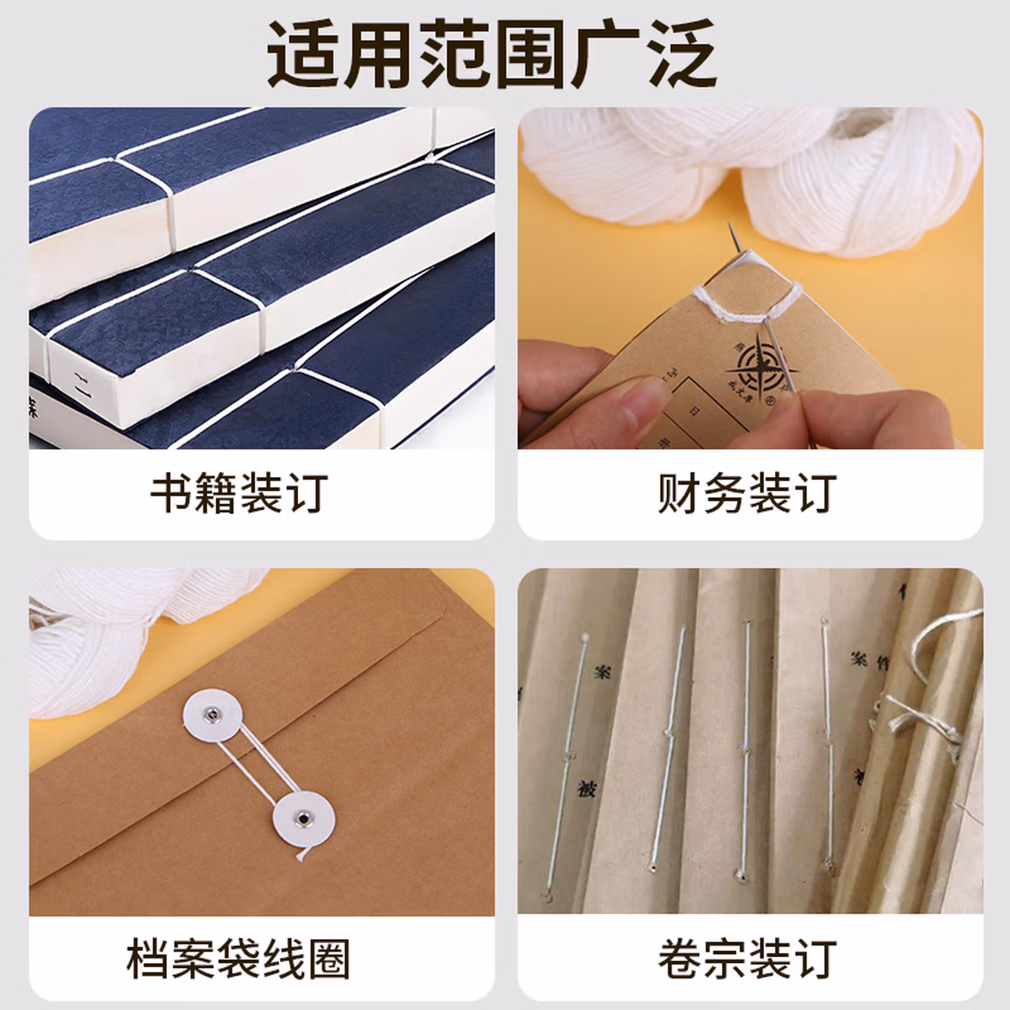 > 优必利 凭证会计装订线 财务账本账簿装订白线 手工针线档案线绳 勾锥凭证封面 10卷 约500米 9001