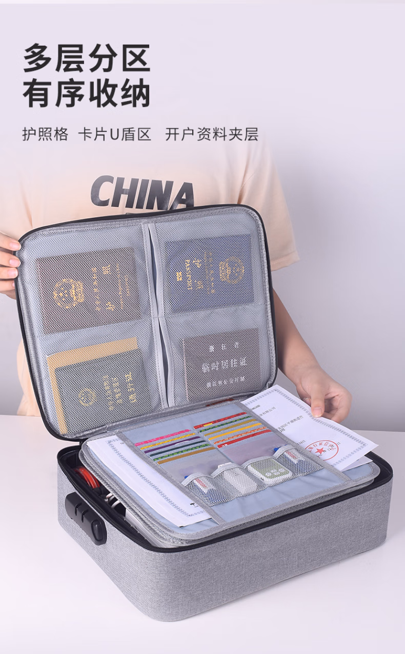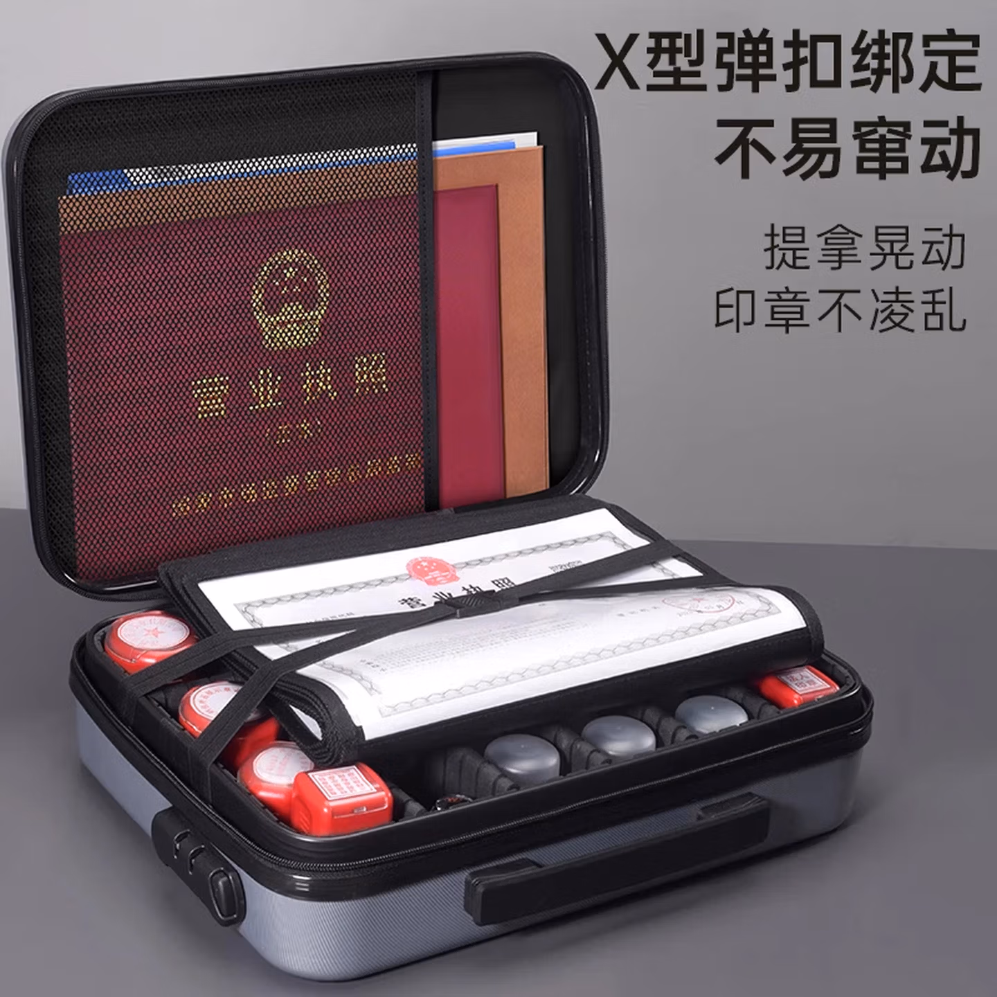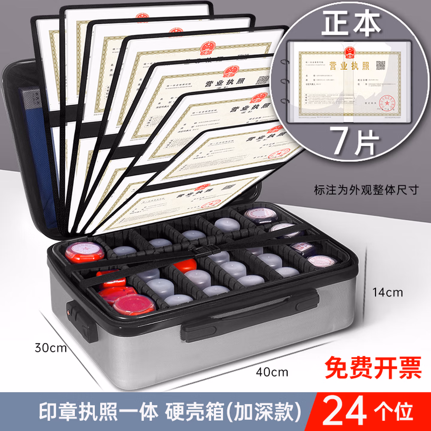 > 立信 印章收纳盒多格印章箱大容量带密码锁营业执照印章收纳包便携印章执照一体包高档公章盒收纳袋 黑色加高(硬壳配A3透明片7个)24个章位