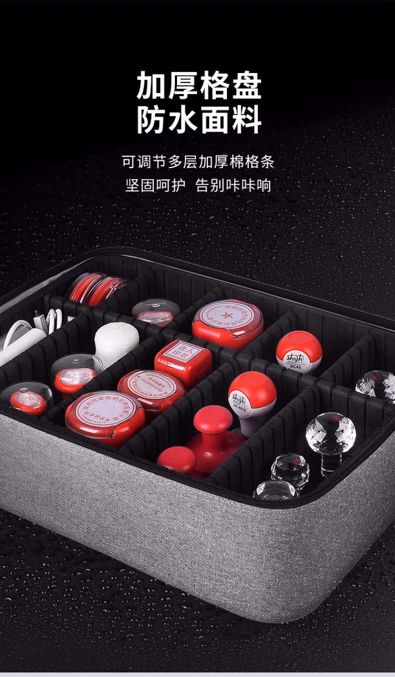 立信 印章收纳盒多格印章箱大容量带密码锁营业执照印章收纳包便携印章执照一体包高档公章盒收纳袋 黑色加高(硬壳配A3透明片7个)24个章位
