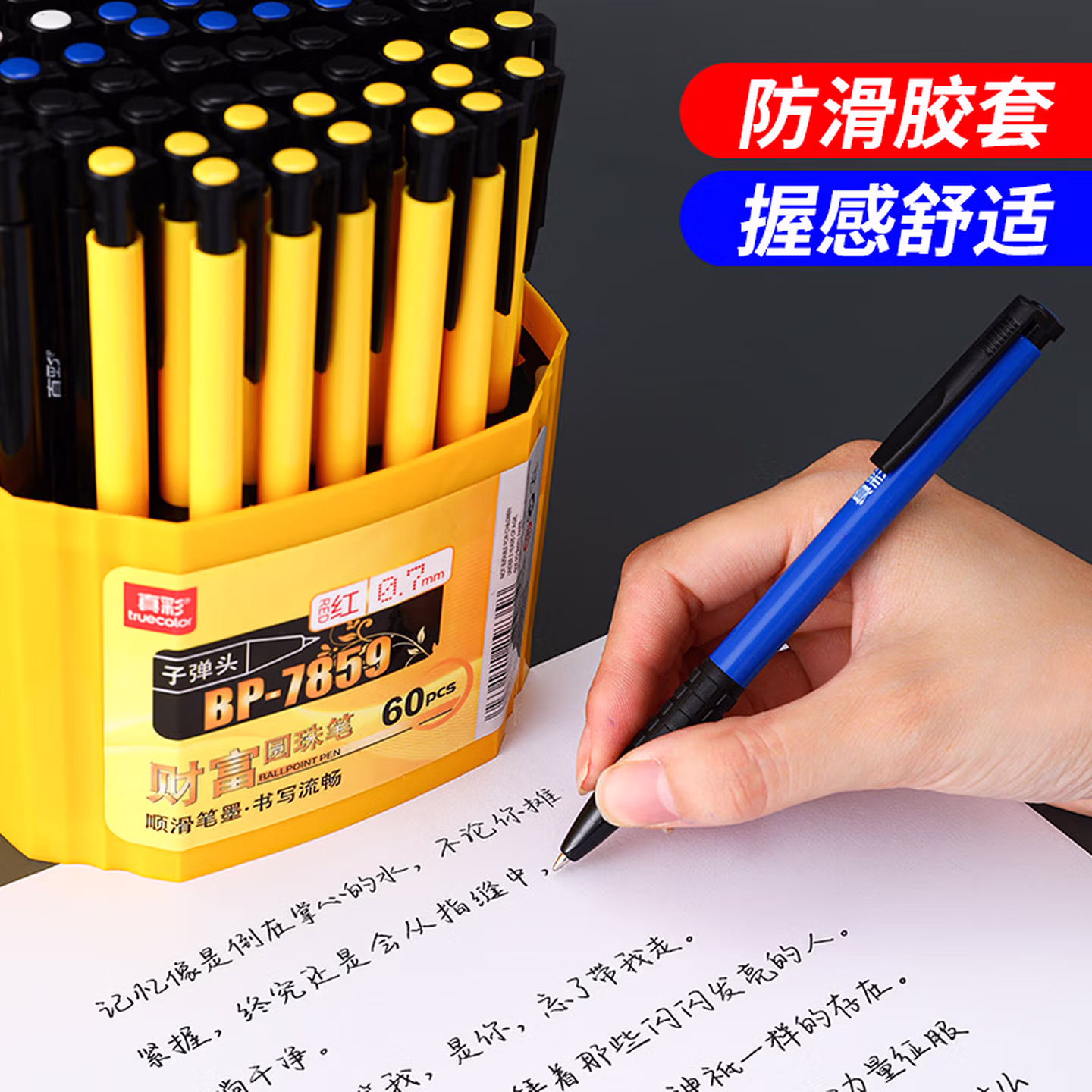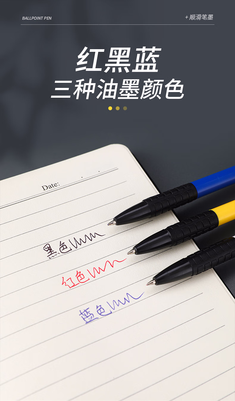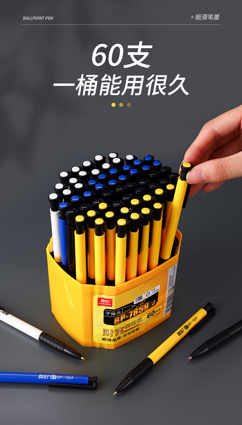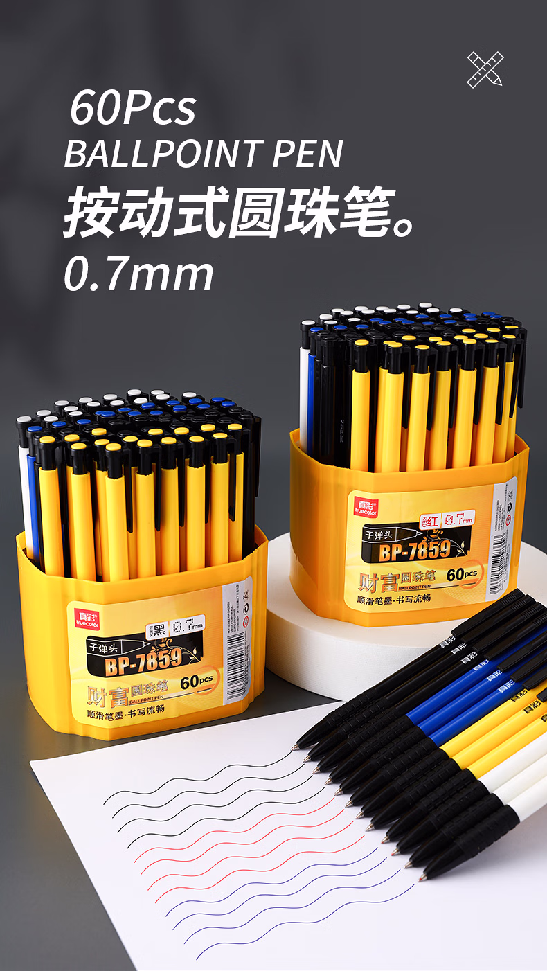 真彩120支按动式圆珠笔0.7mm蓝色中油笔按动原子笔批发黑色老式用可爱自动按压式小学生专用圆柱笔办公 蓝色/120支