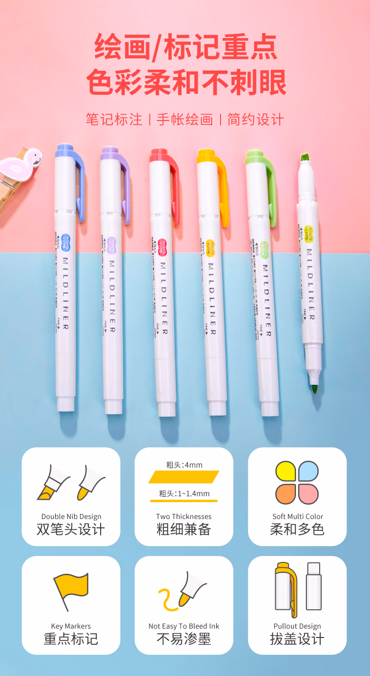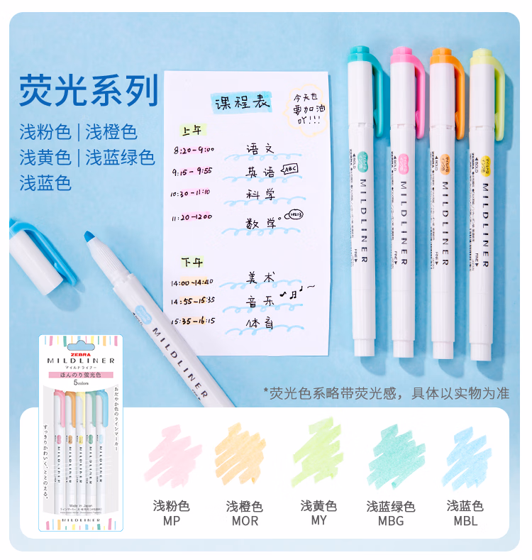 > 斑马牌 (ZEBRA)荧光笔 WKT7 5色套装 亲和系列 双头荧光笔 学生标记笔记号笔 WKT7-N-5C