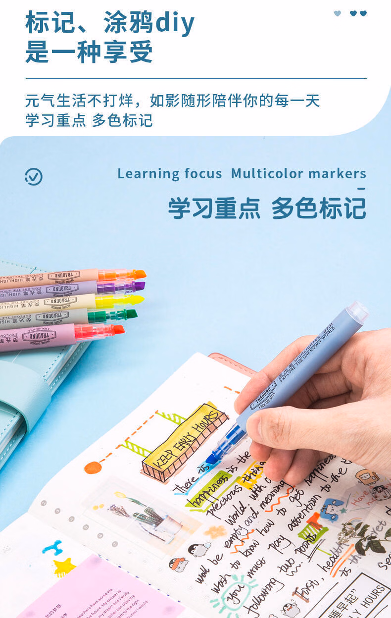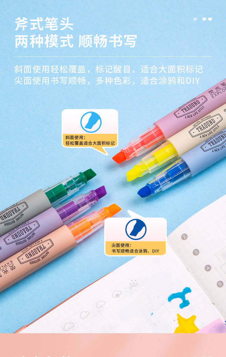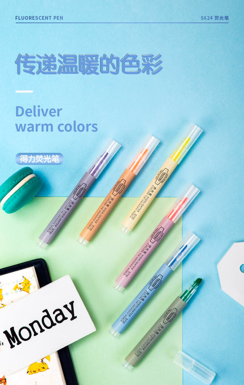 > 得力荧光笔学生用做笔记专用划重点彩色记号笔高颜值手帐彩笔黄色小学生用银光笔初中生大容量笔记标注笔 12支装 绿色