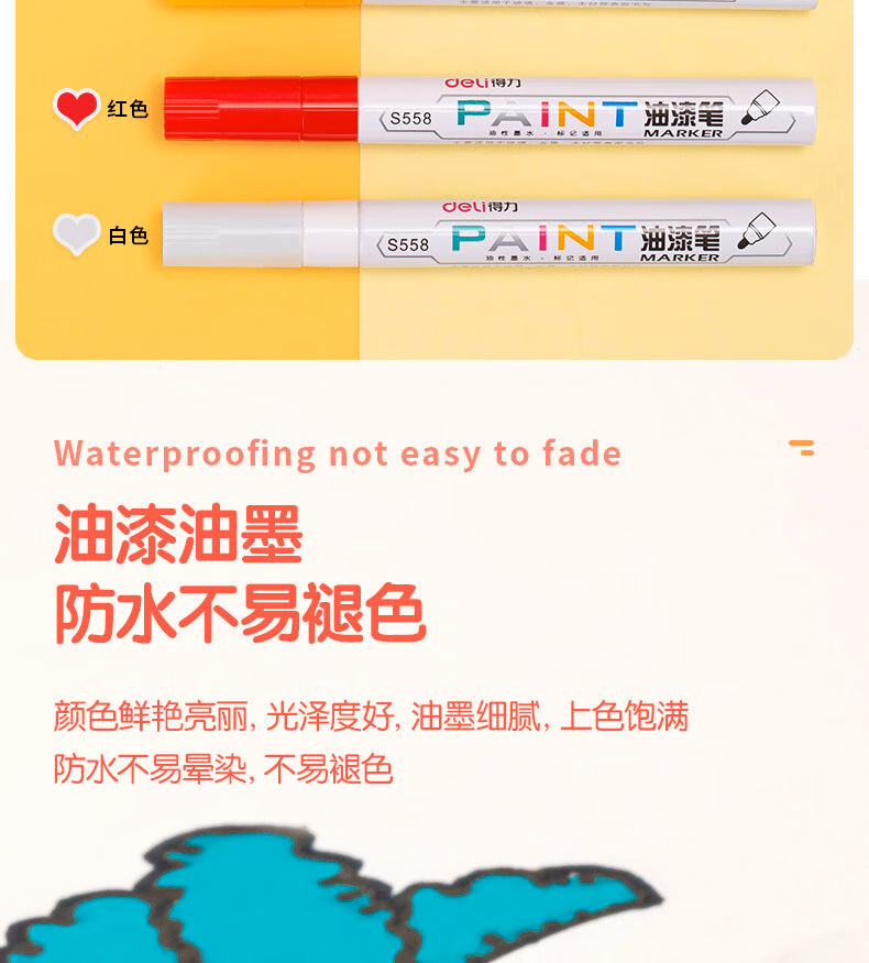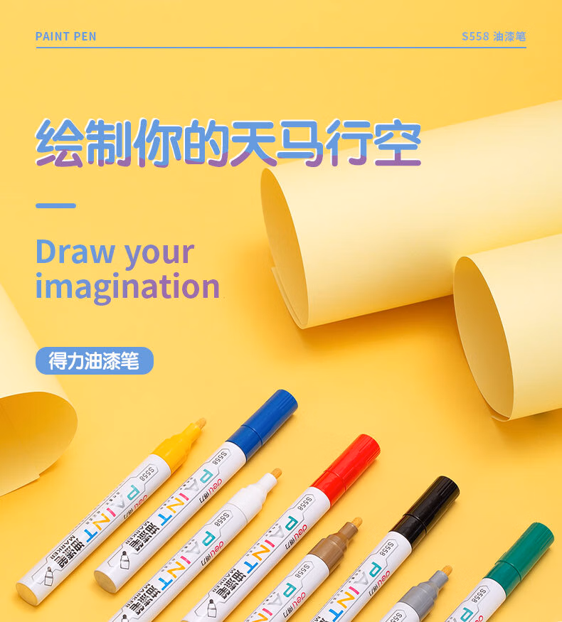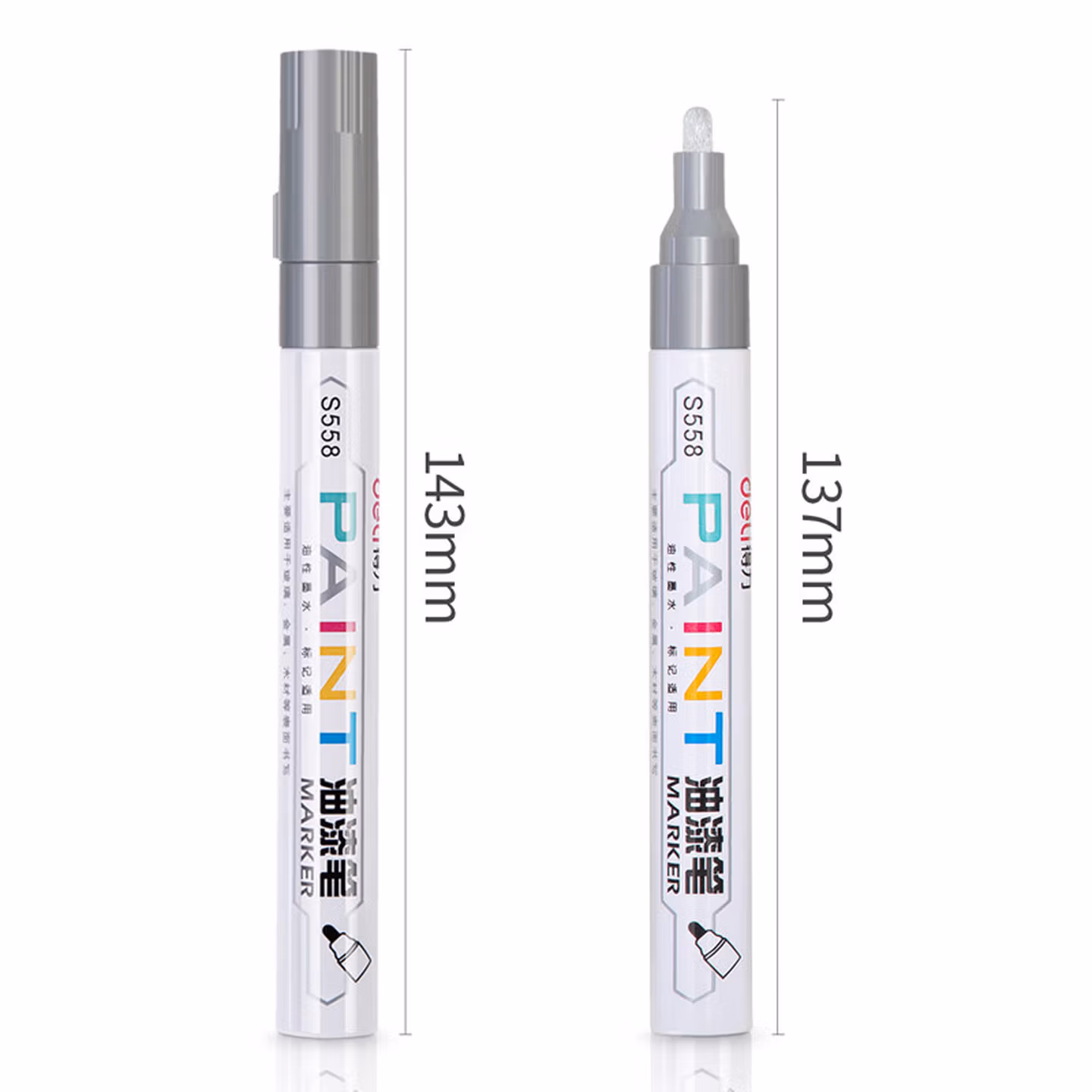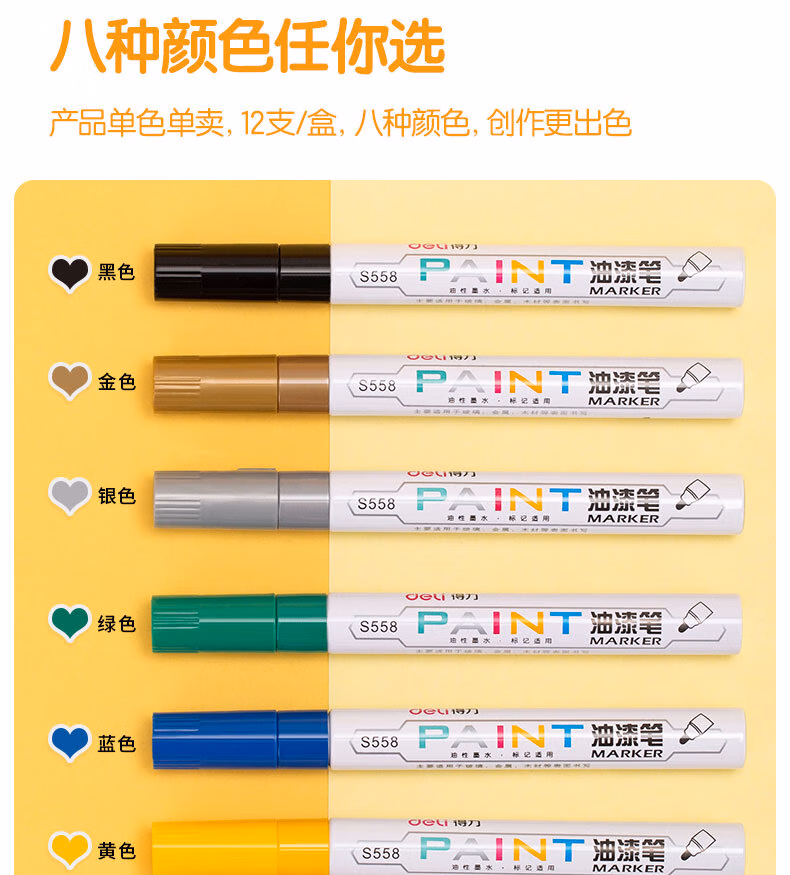 > 得力(deli)修补油漆笔记号笔 手绘涂鸦笔 2.0mm银色防水不掉色签名笔签到笔 12支/盒 S558