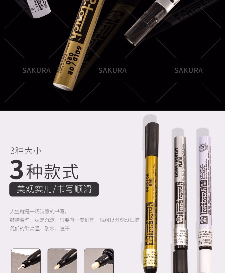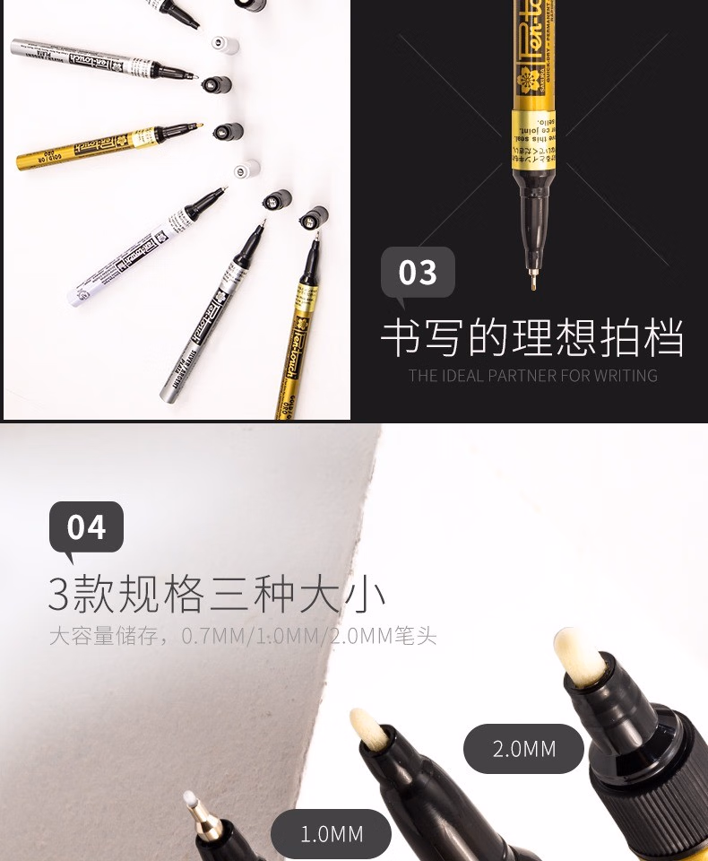 > 樱花油漆笔签到笔防水不掉色明星专用签名笔创意绘画高光笔大头细头记号笔 金色0.7mm 支