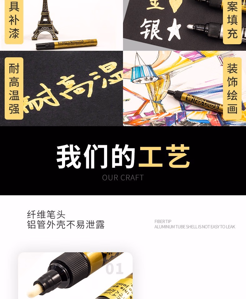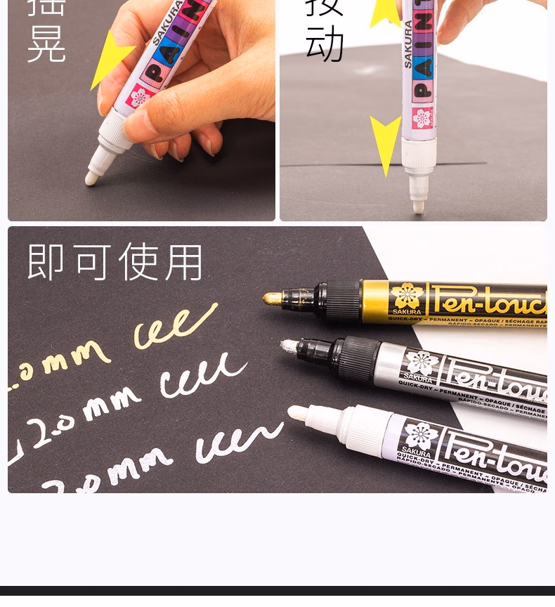 樱花油漆笔签到笔防水不掉色明星专用签名笔创意绘画高光笔大头细头记号笔 金色0.7mm 支