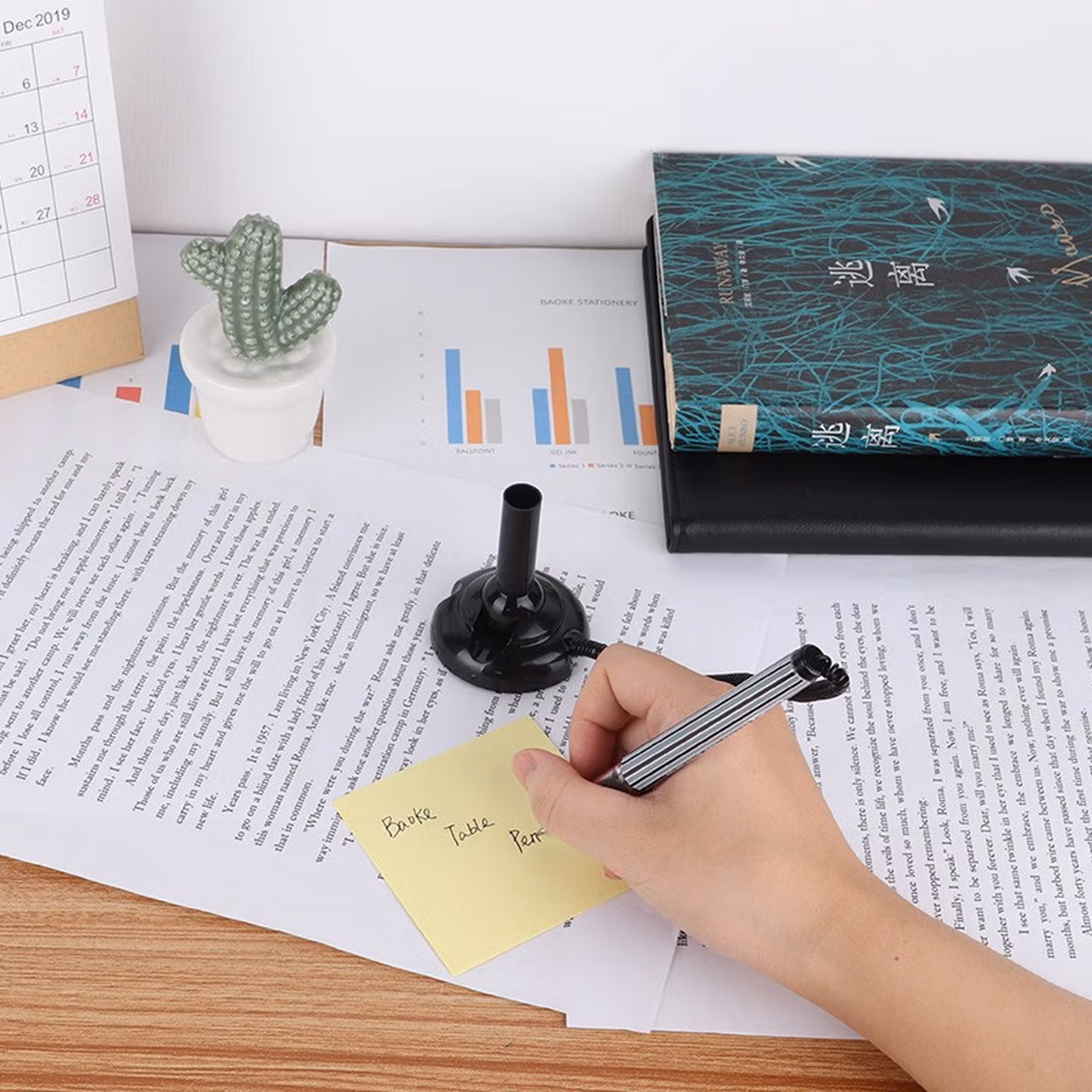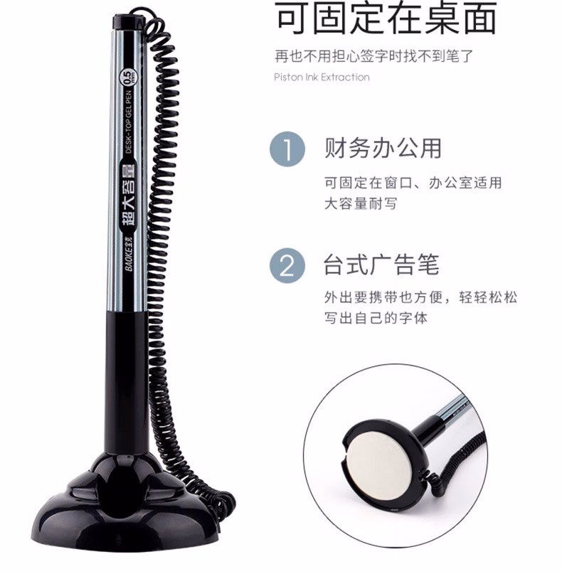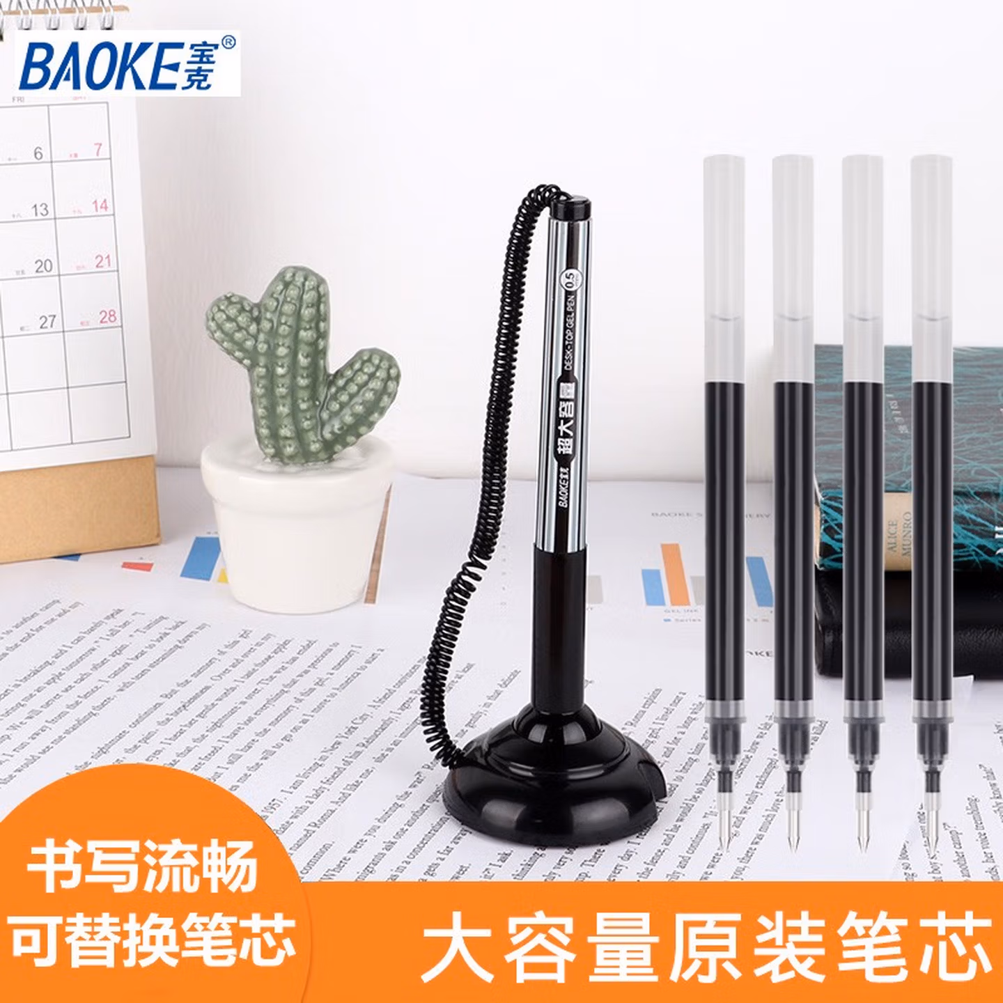 > 宝克台笔加粗笔芯带线办公签字笔带绳中性水笔黑色0.5前台桌面固定笔座粘在桌子上防丢吧台柜台服务 10支黑色台笔NO891(可搭配1930替芯)