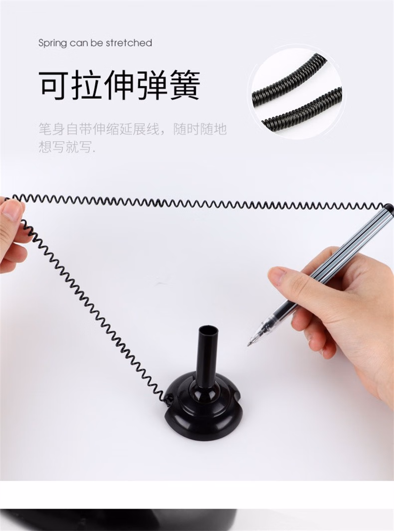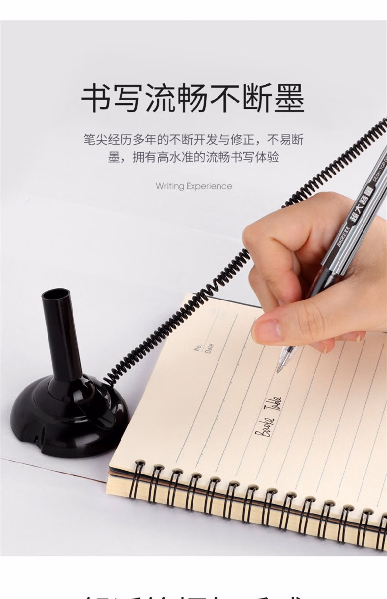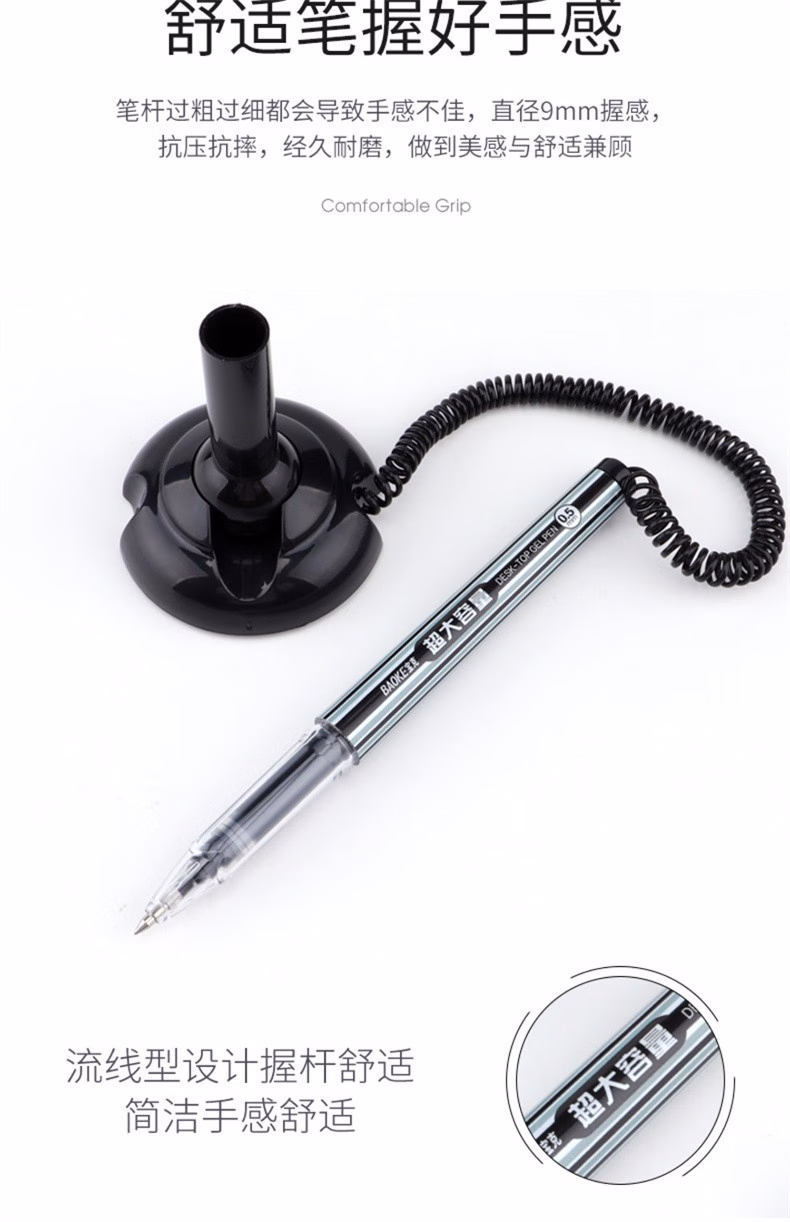 > 宝克台笔加粗笔芯带线办公签字笔带绳中性水笔黑色0.5前台桌面固定笔座粘在桌子上防丢吧台柜台服务 24支黑色台笔 NO850(可搭配2240替芯)
