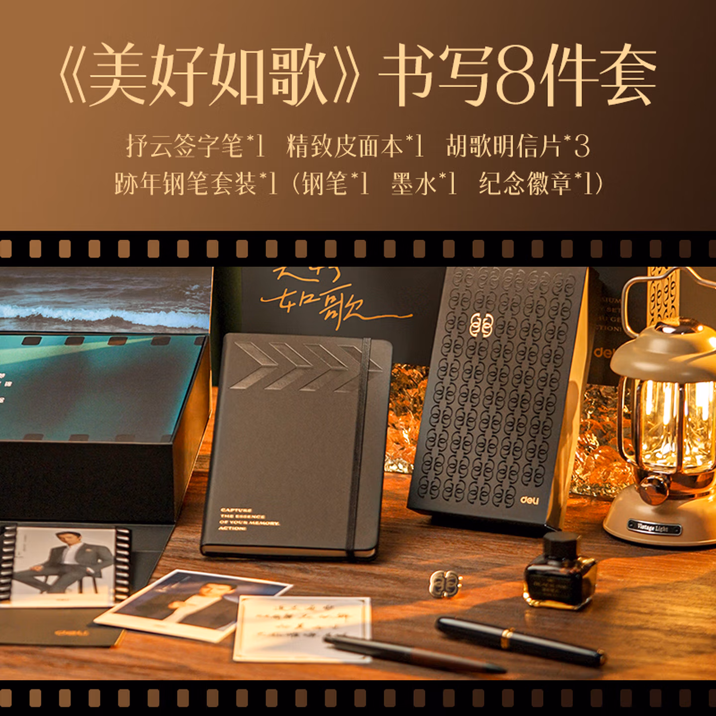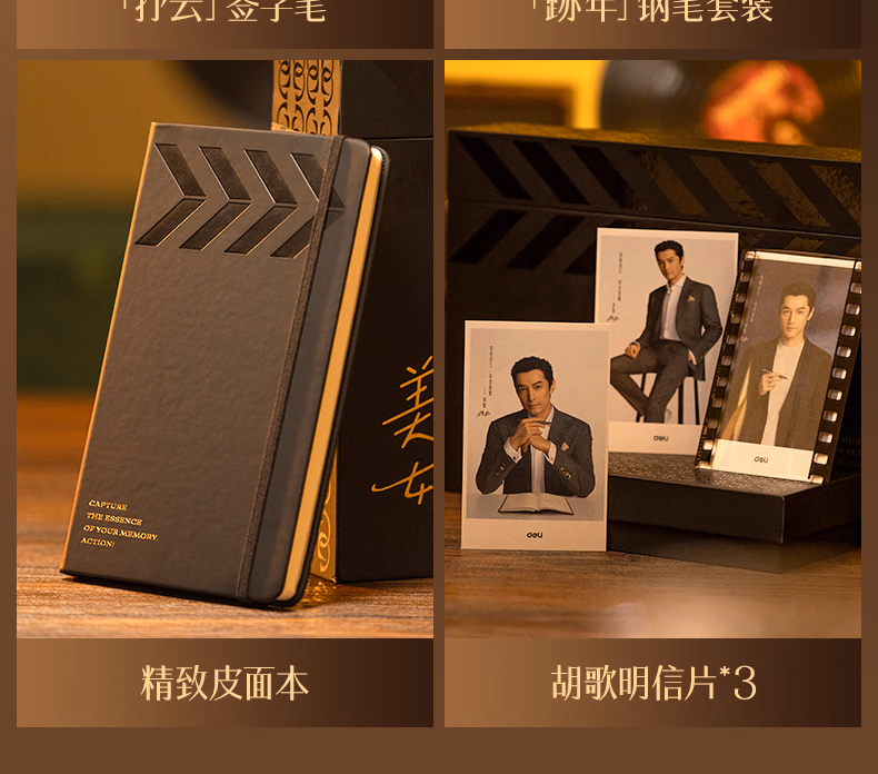 【错过等1年】得力(deli)美好如歌限定商务礼盒套装 胡歌同款金属签字笔中性笔钢笔墨水皮面本金属徽章明信片 SG199