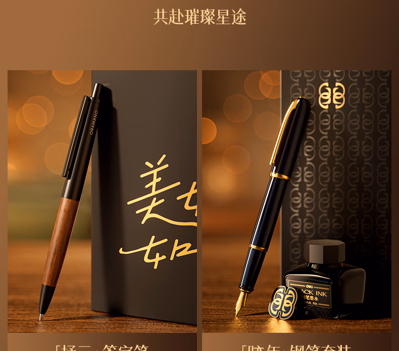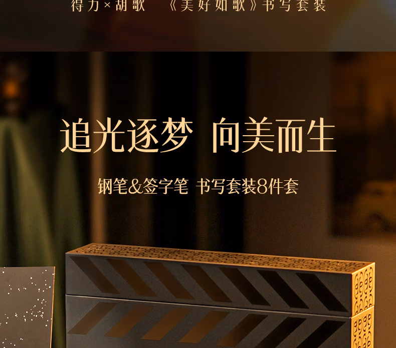 > 【错过等1年】得力(deli)美好如歌限定商务礼盒套装 胡歌同款金属签字笔中性笔钢笔墨水皮面本金属徽章明信片 SG199