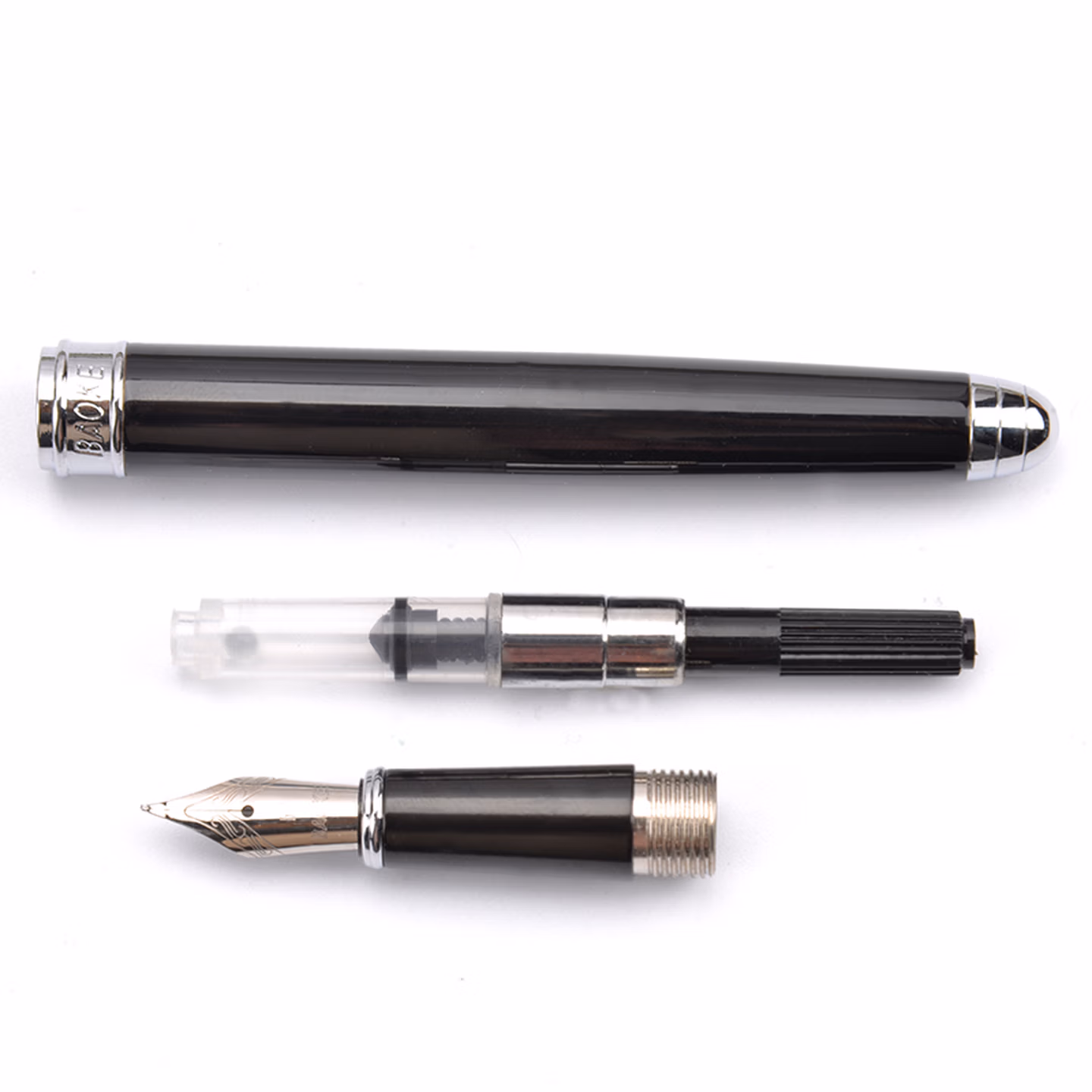 BAOKE宝克钢笔弯头美工笔财务考试办公签字书法商务笔可替换墨囊 PC116银色-0.7