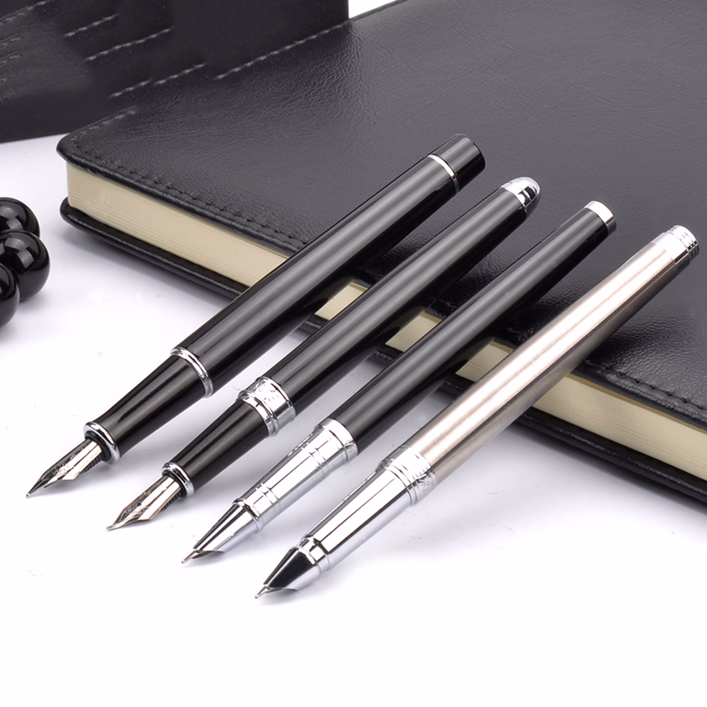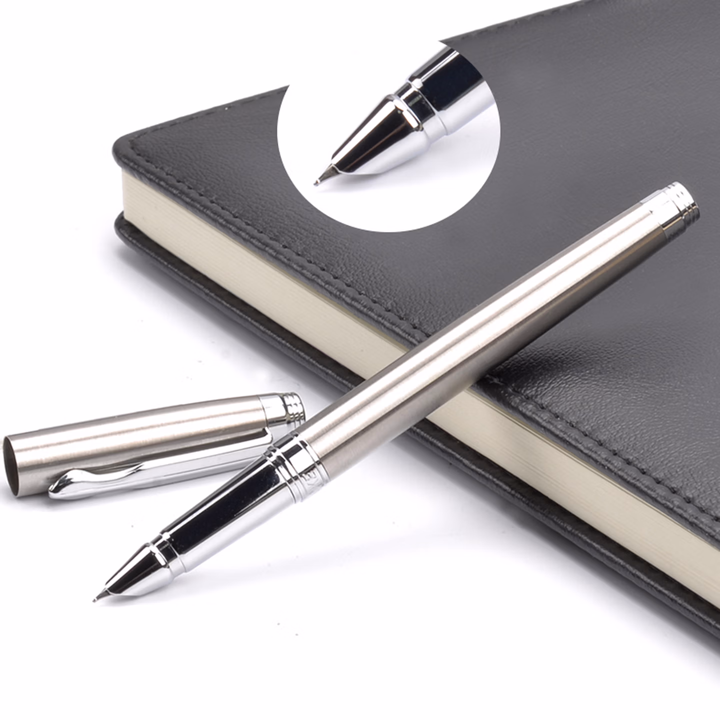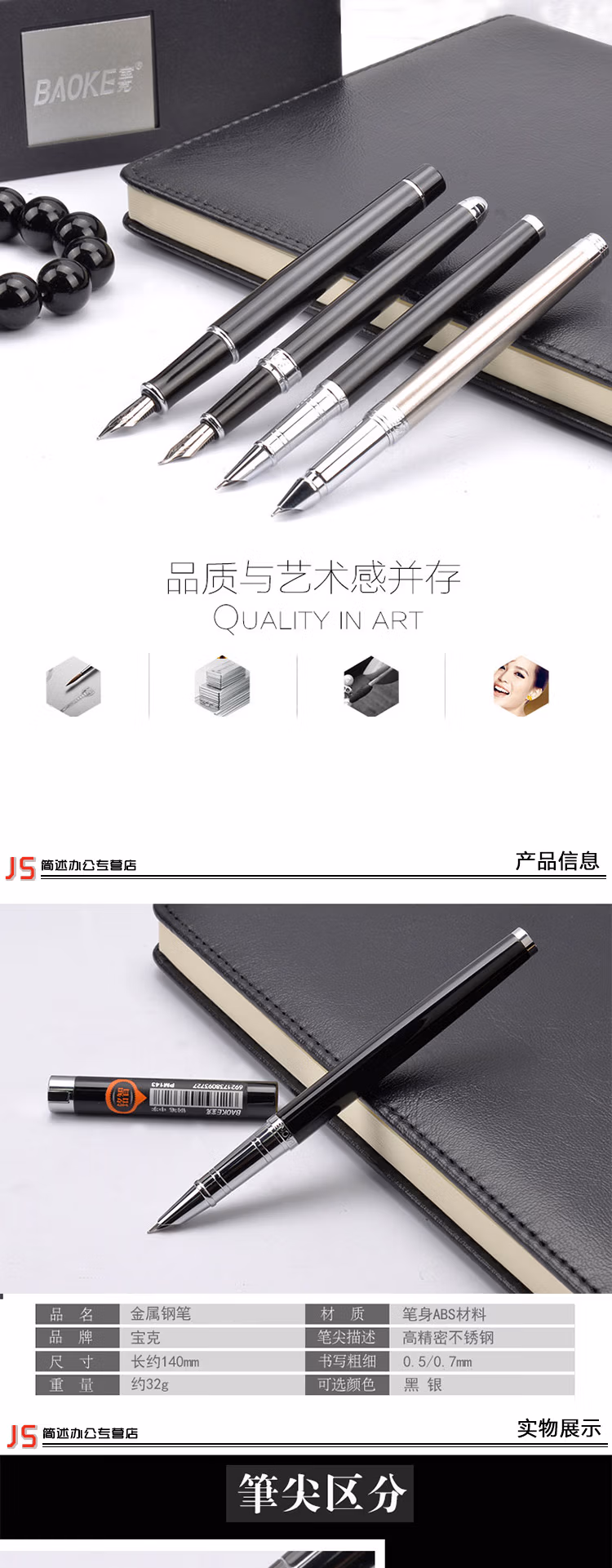 > BAOKE宝克钢笔弯头美工笔财务考试办公签字书法商务笔可替换墨囊 PC116银色-0.7
