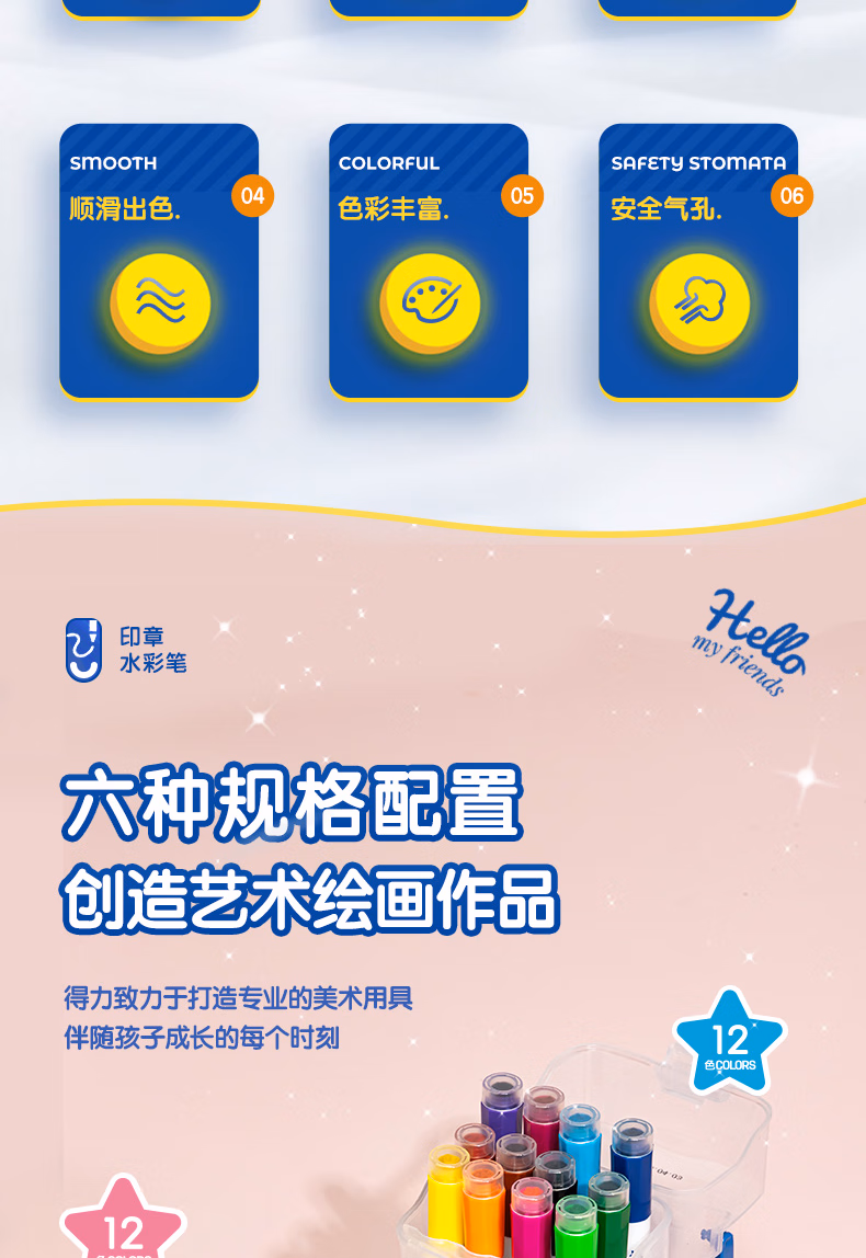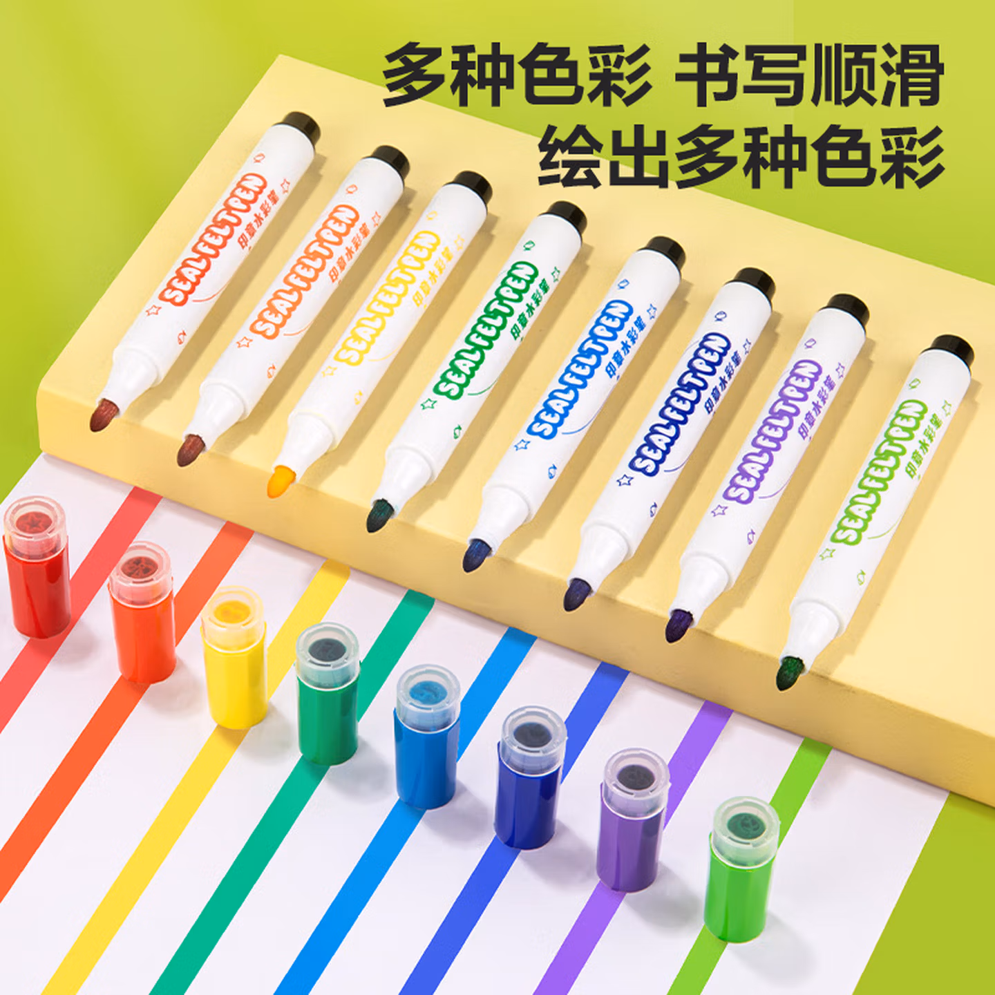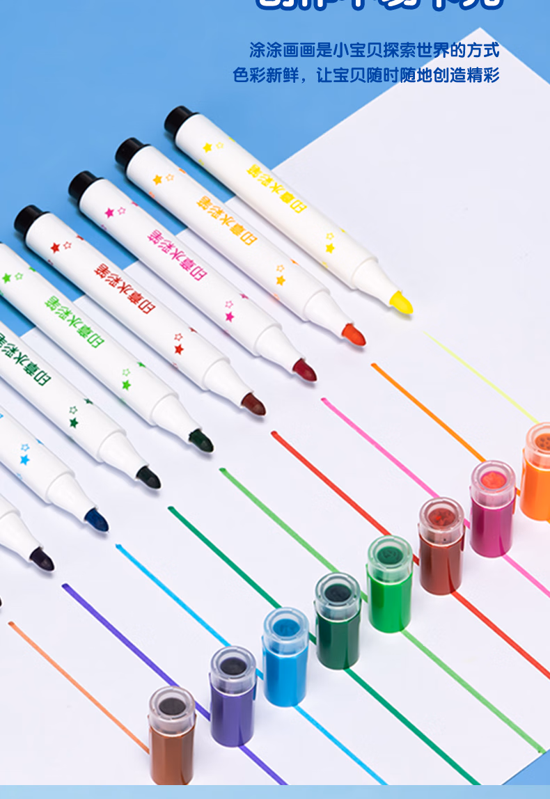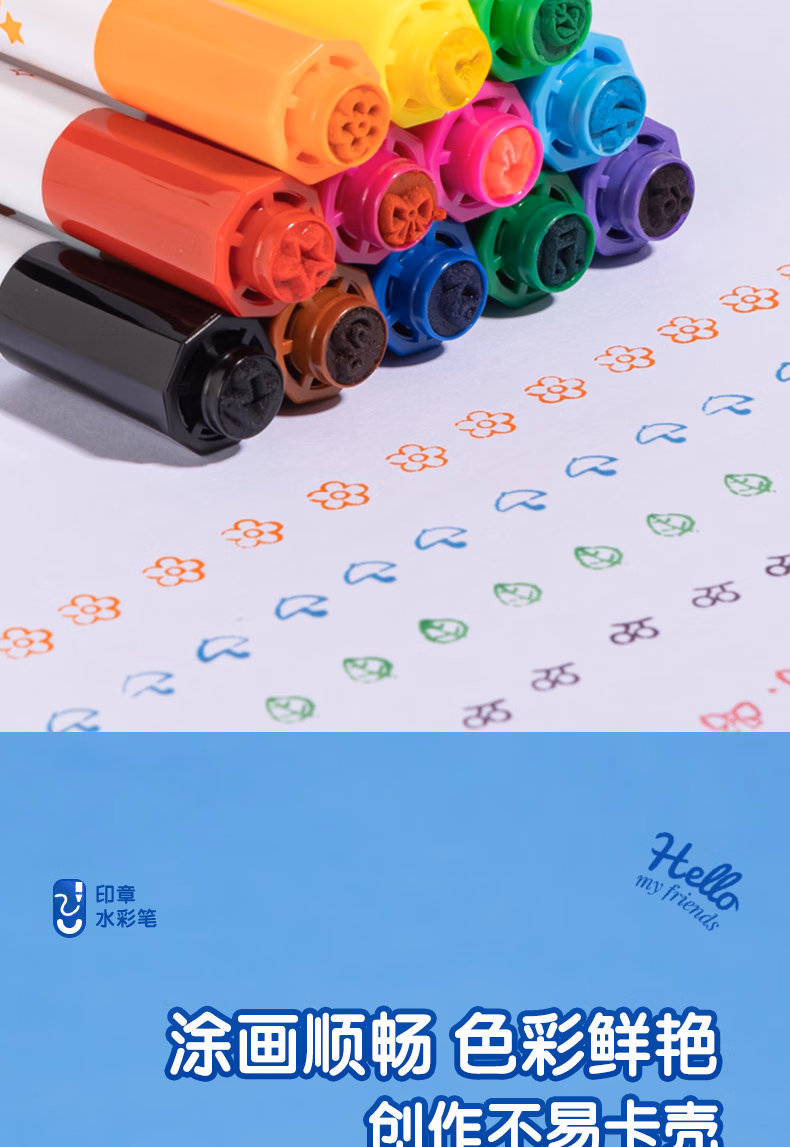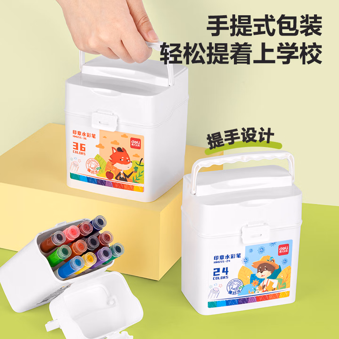 得力(deli)24色圆杆印章水彩笔易可洗臻好洗学生幼儿儿童绘画涂色文具美术画材HM655-24【学生开学】