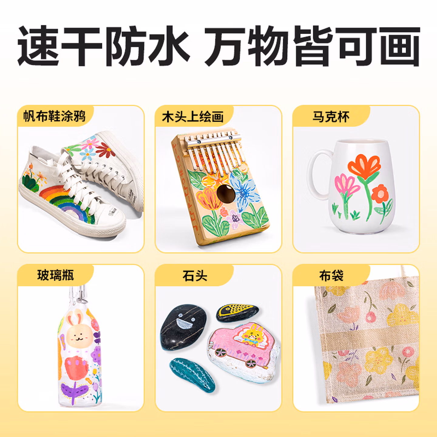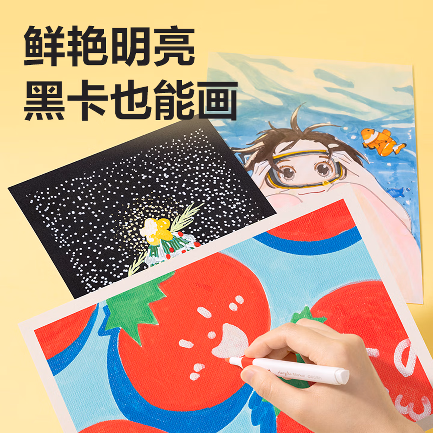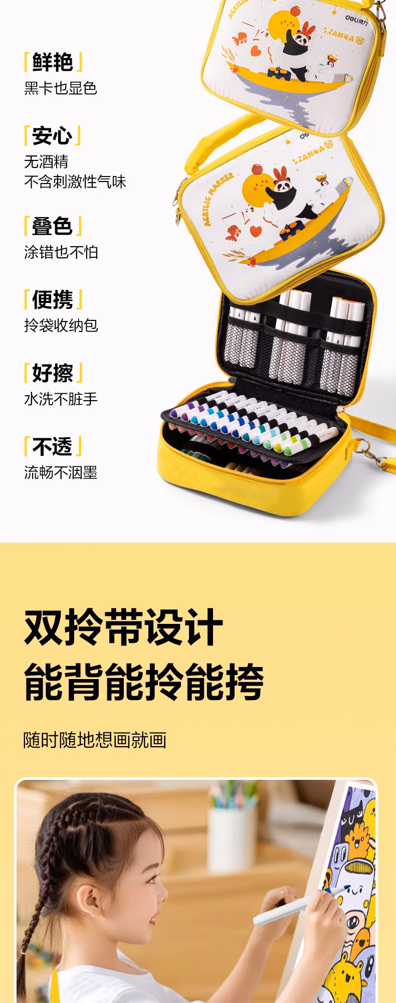 > 得力(deli)36色丙烯马克笔不透色可叠色芝士包儿童丙烯笔云朵包不透纸水彩笔涂鸦幼美术颜料HM343-36
