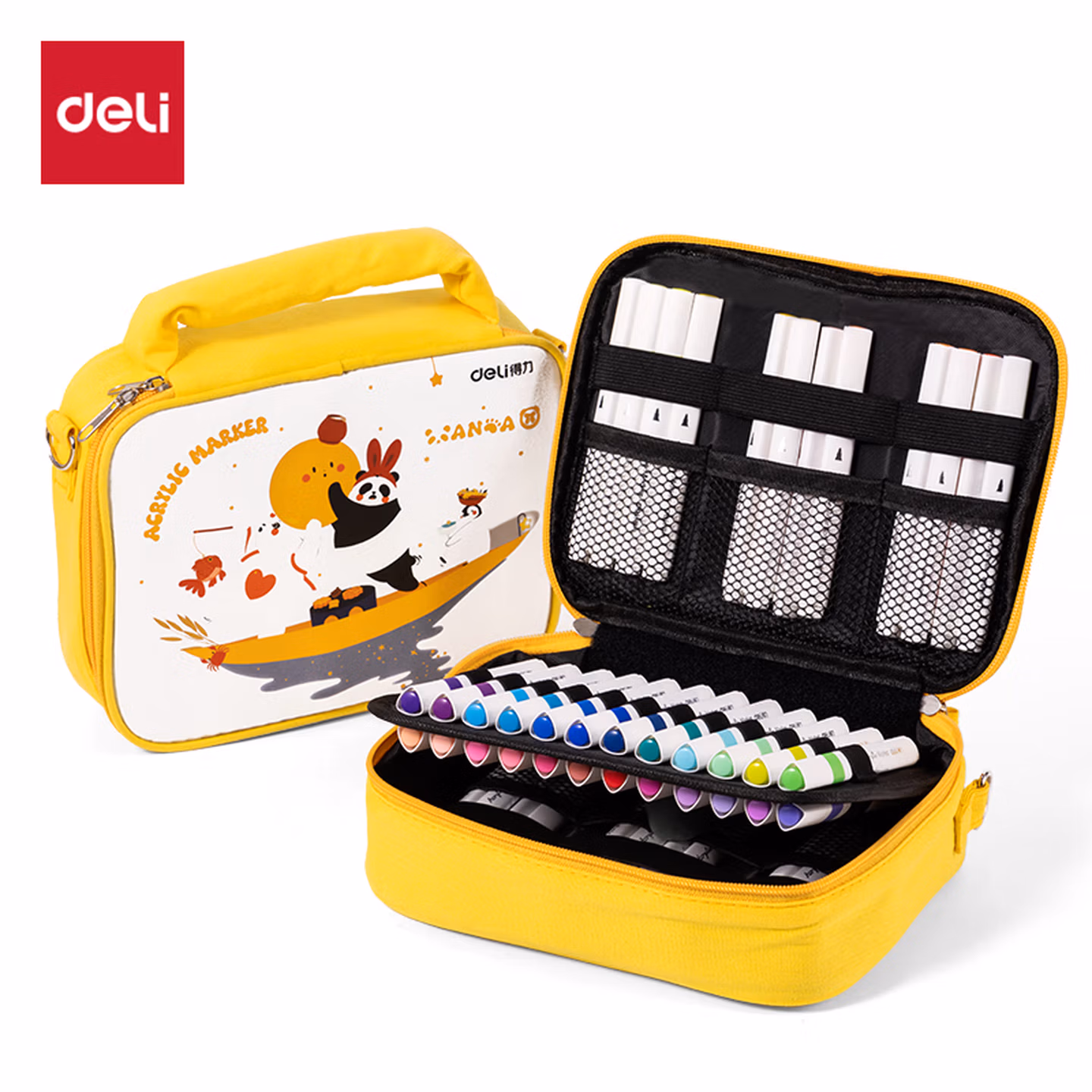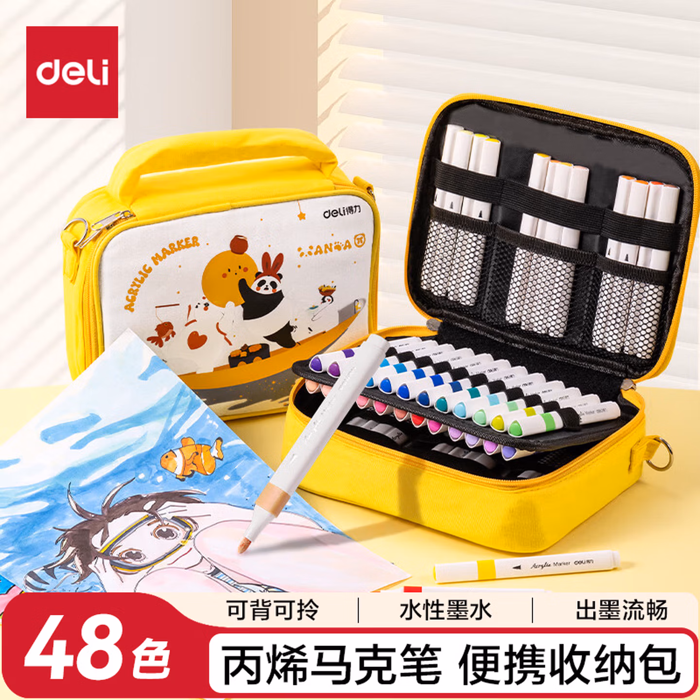 得力(deli)36色丙烯马克笔不透色可叠色芝士包儿童丙烯笔云朵包不透纸水彩笔涂鸦幼美术颜料HM343-36