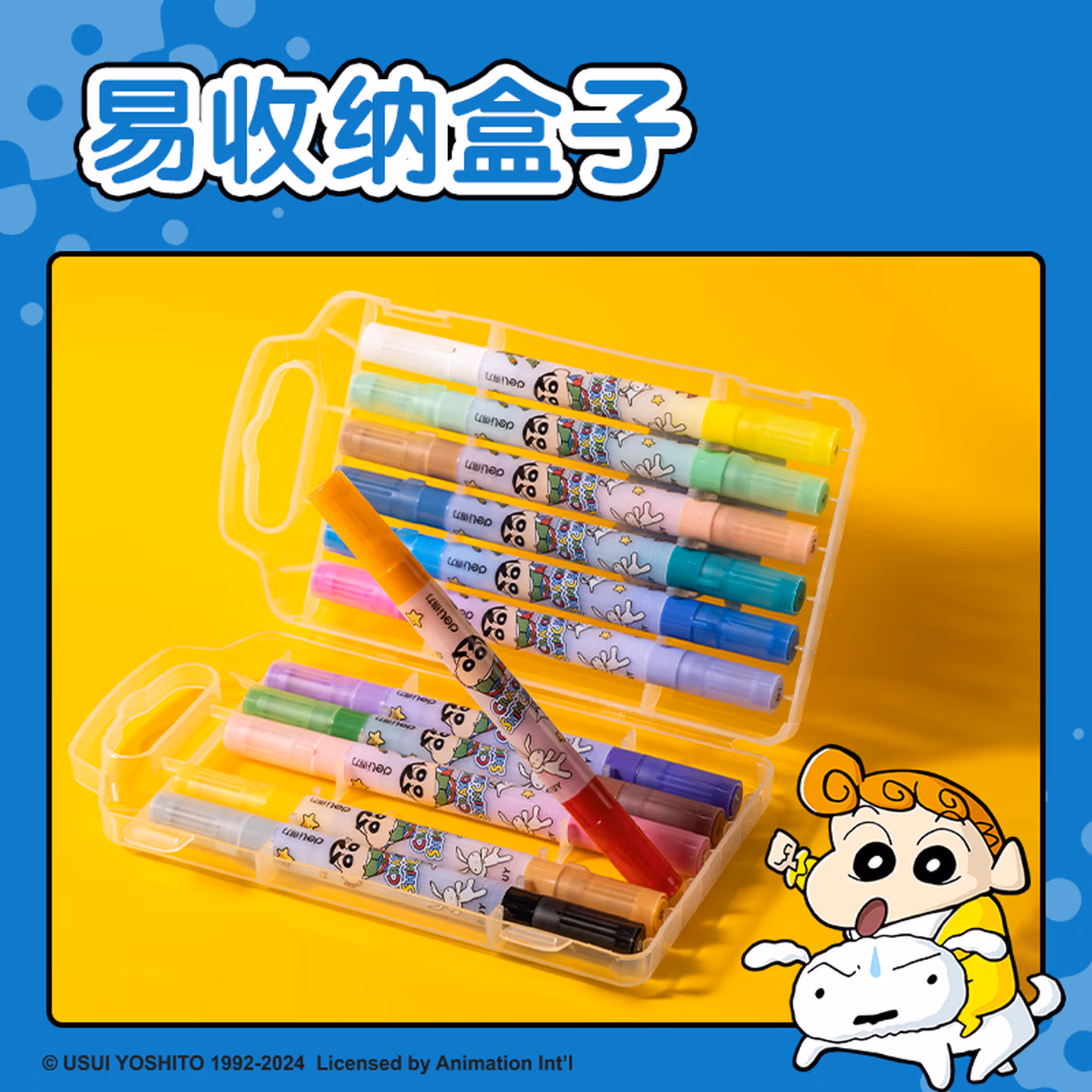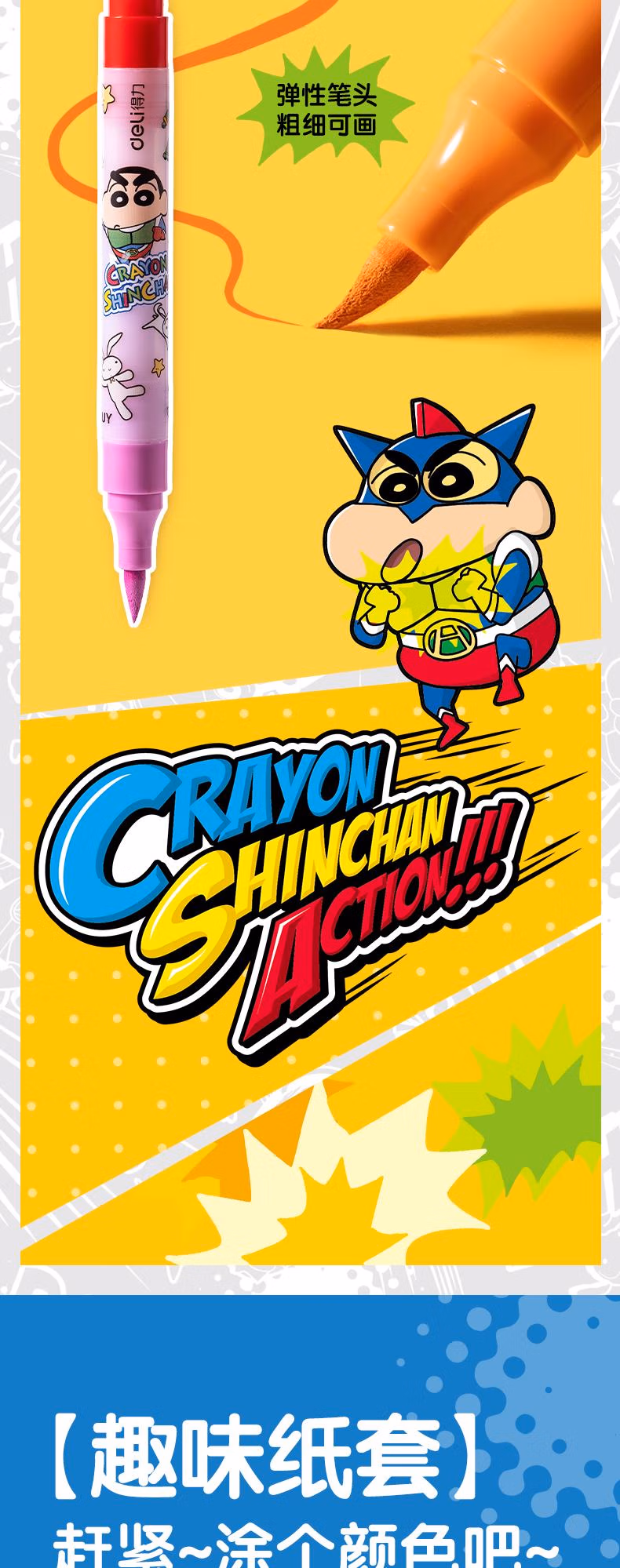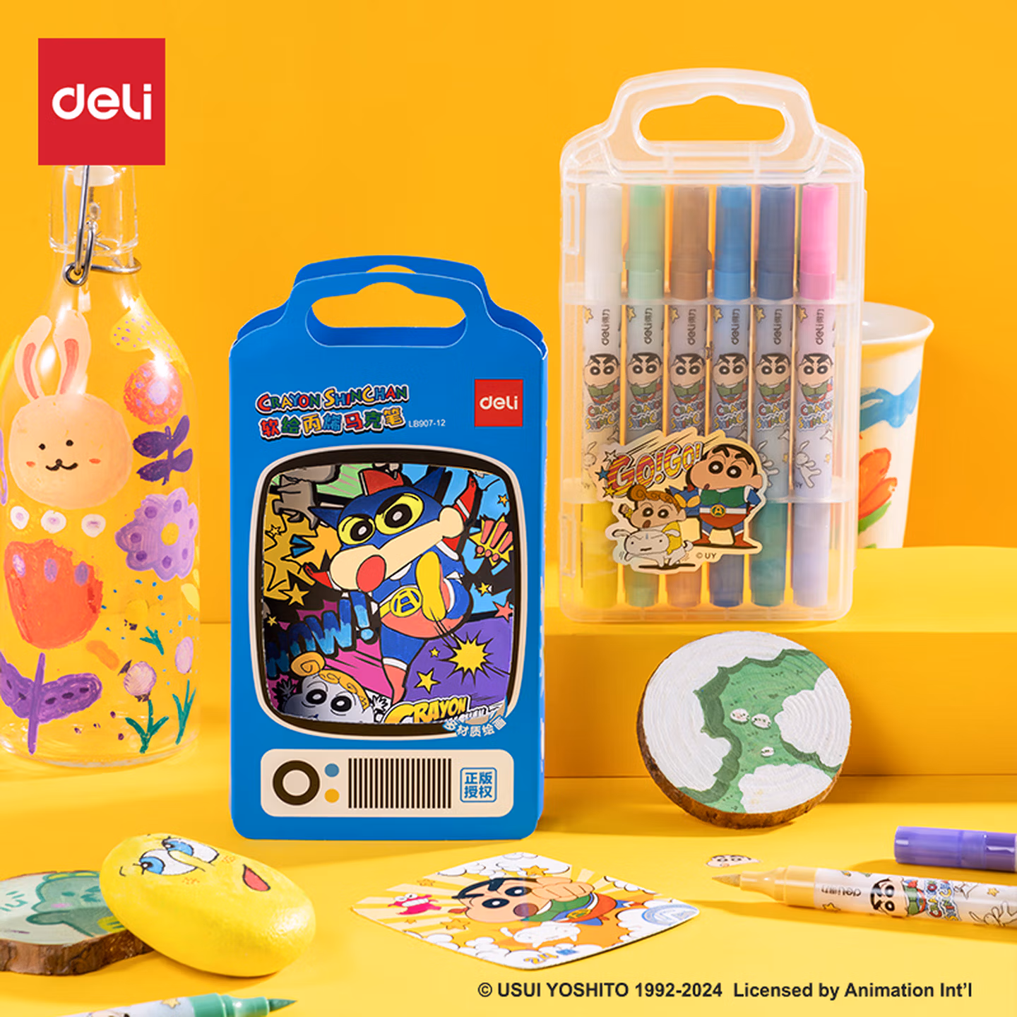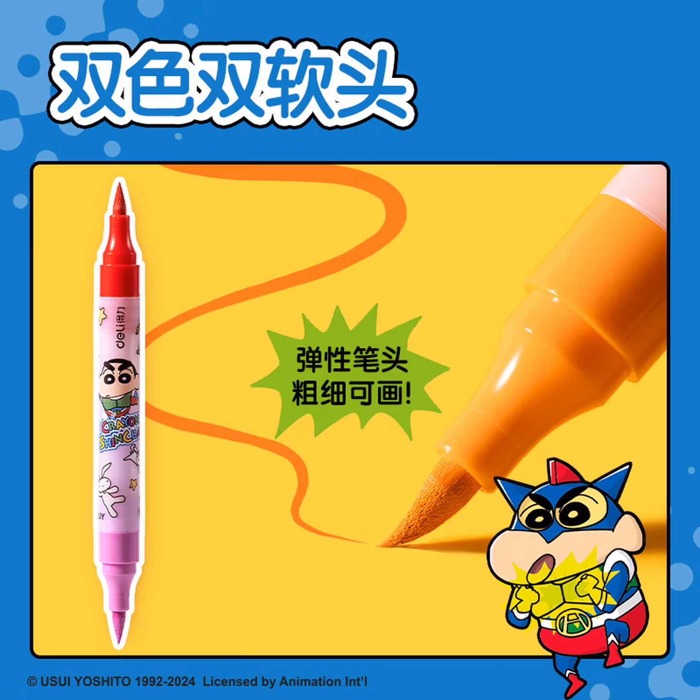 > 得力(deli)24色蜡笔小新双软头丙烯马克笔水彩笔圆杆学生儿童涂色手绘DIY荧光记号笔画笔亲子袋装LB907-24