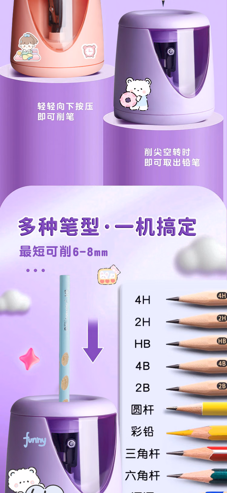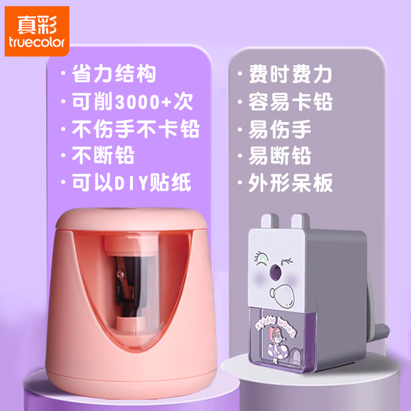 真彩电动卷笔刀自动削笔刀儿童小学生专用充电全自动进铅铅笔刀削笔器刨笔机旋绞笔刀销笔修笔旋笔耐用 奶茶女孩-充电款/送刀头*2+充电线+助力器+贴纸