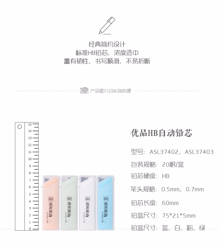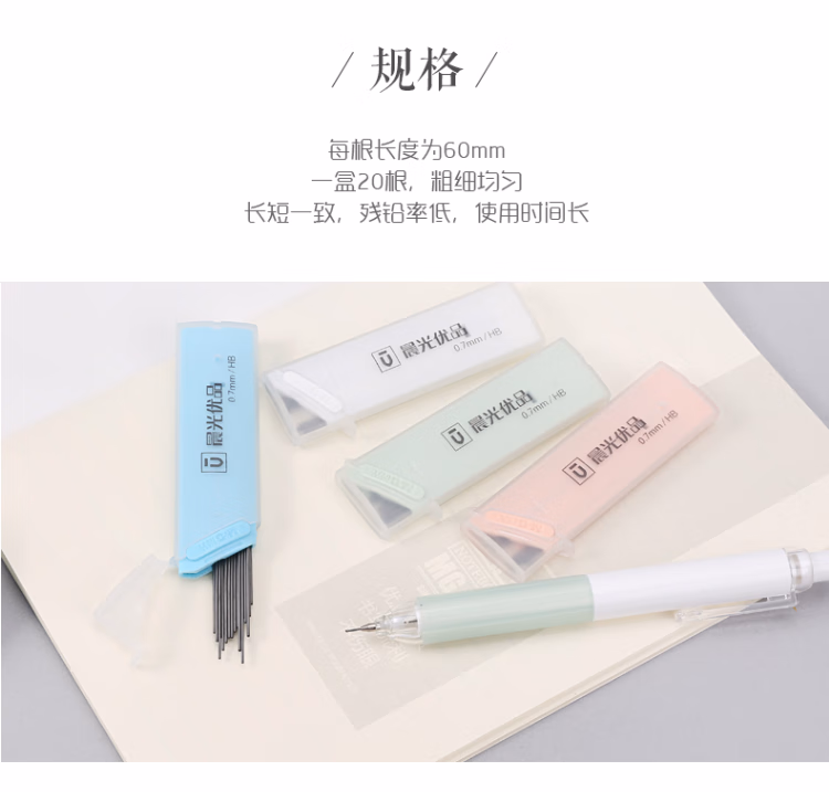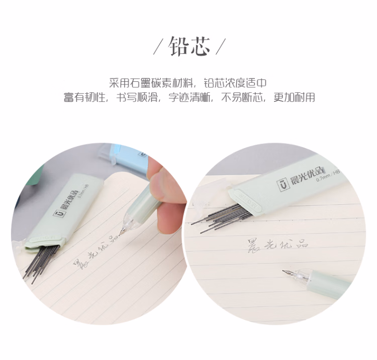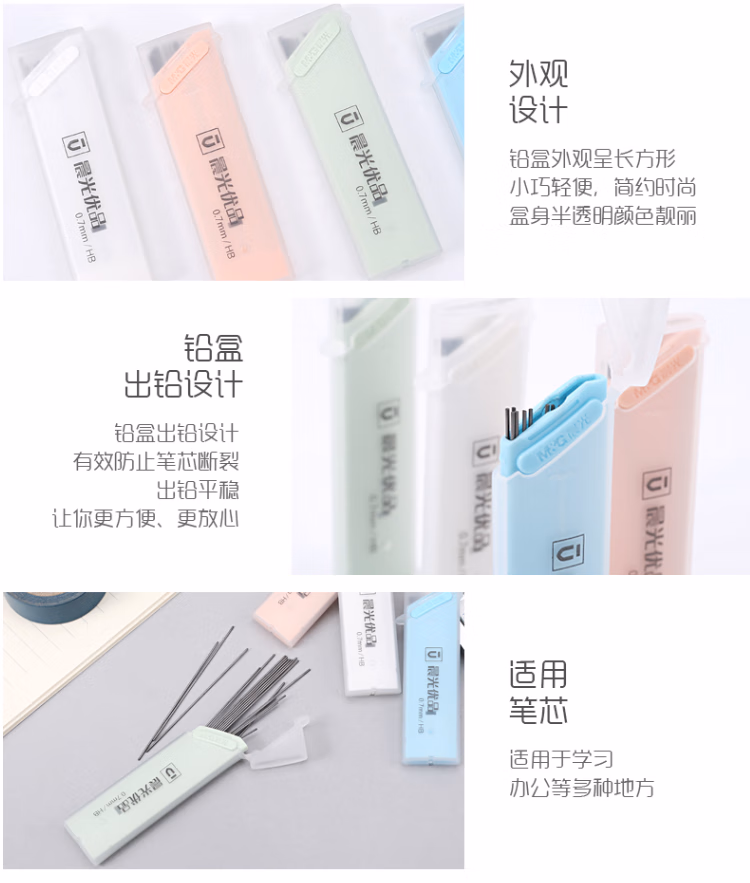 > 晨光(M&G 优品铅芯HB自动铅笔按动活动学生铅笔笔芯0.7mm 学习办公铅笔替芯HB 黑色ASL37403 5小盒装