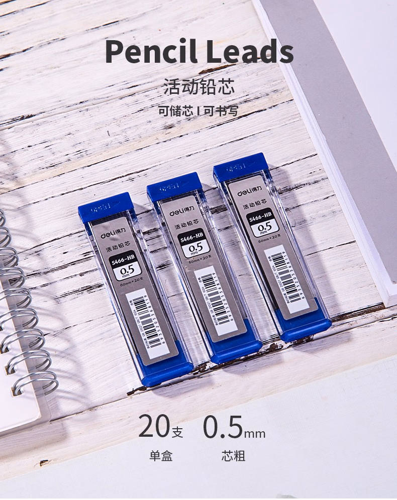 得力(deli) 不易断芯 活动铅笔铅芯 0.5mm/0.7mm 铅芯 0.5mm 【0.7mm HB】SH235(100根)