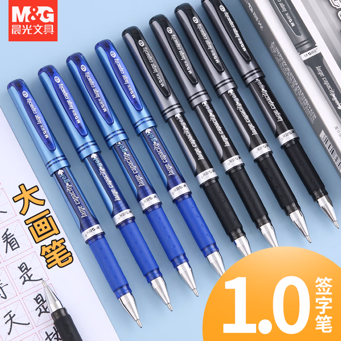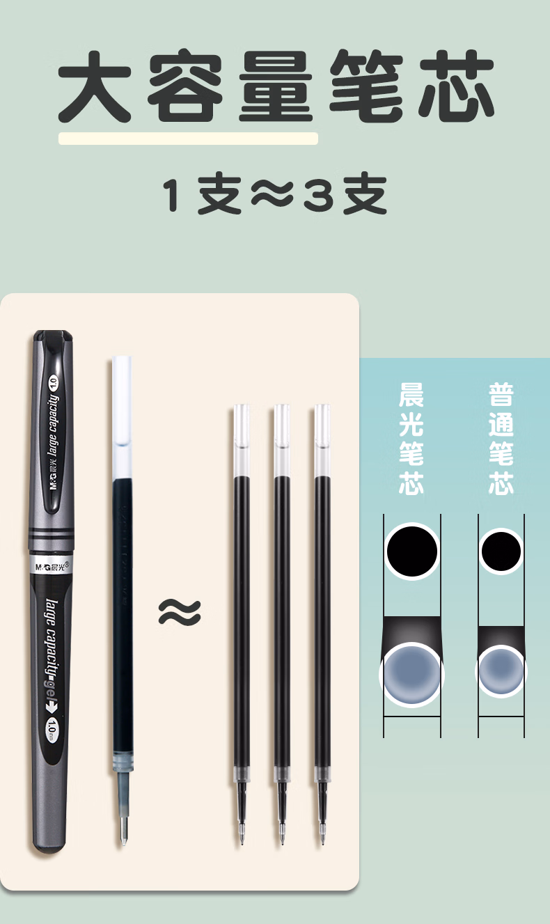 > 晨光(M&G)中性笔大笔画 3支黑 20支原装笔芯 拔盖大容量签字笔简约加粗办公学生用书法练字黑碳素笔AGP13604