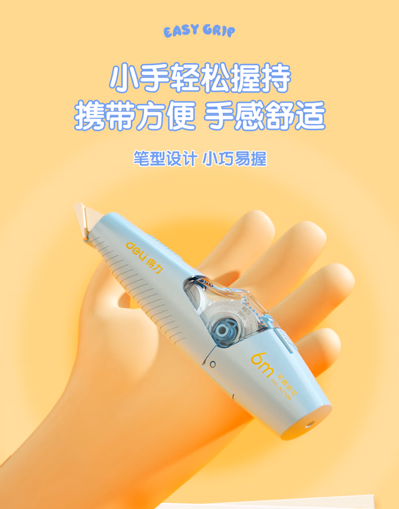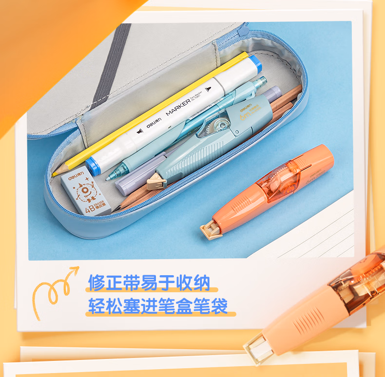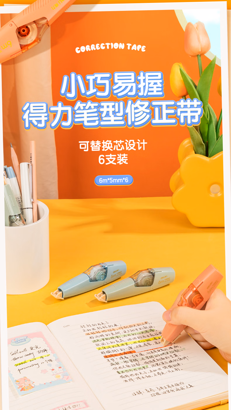 > 得力(deli)36m笔型修正带替芯 大容量可换替芯 学生开学文具用品涂改带改正带 6只装 儿童节礼物